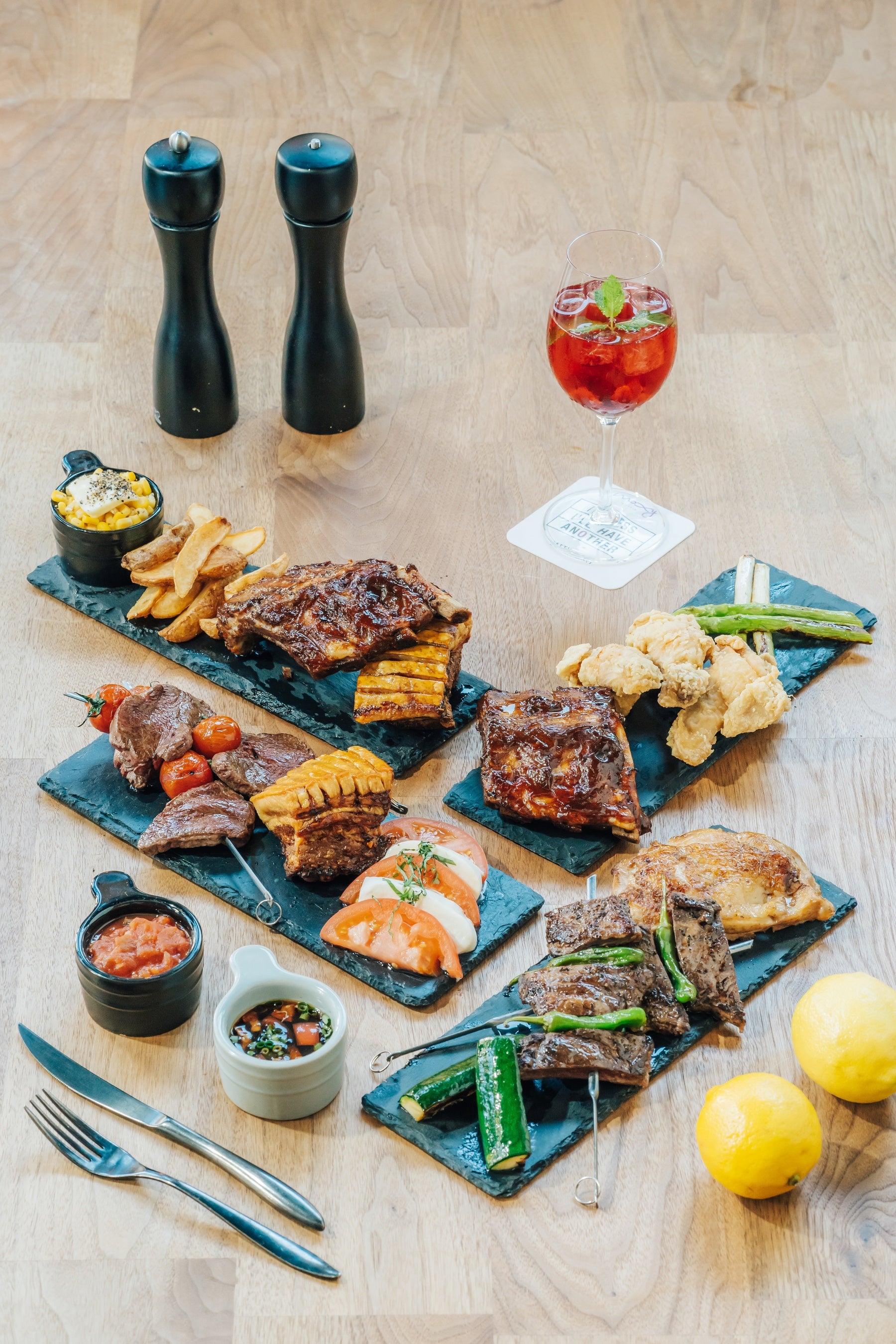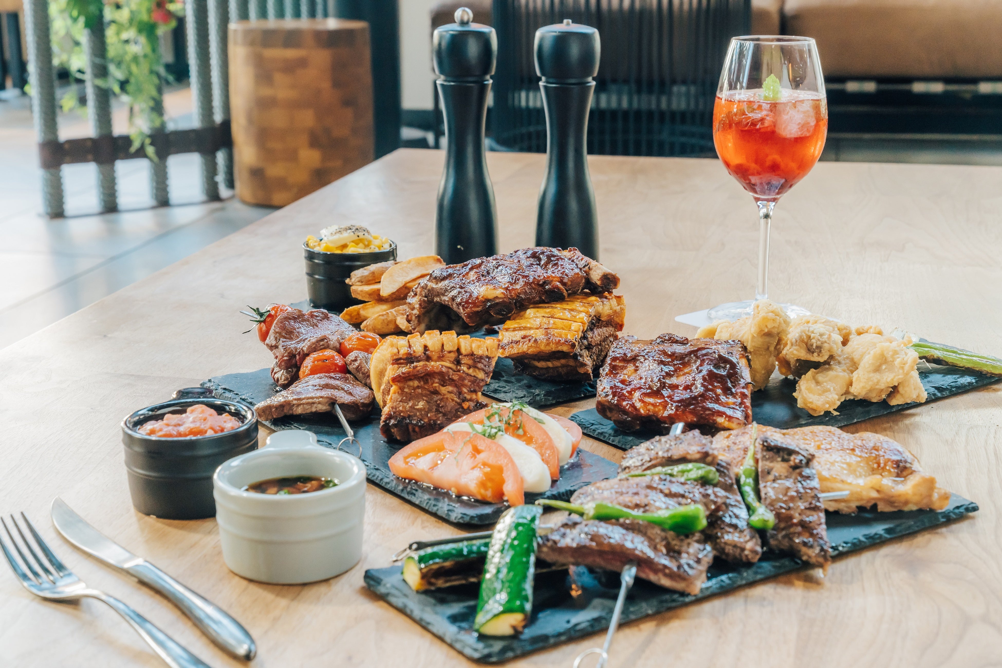 BBQをイメージした串焼きや、カリっと焼いた豚バラ、シェフ特製のBBQソースがたっぷりついたリブ、手羽のから揚げなどが主役である豪華なセットメニューでございます。