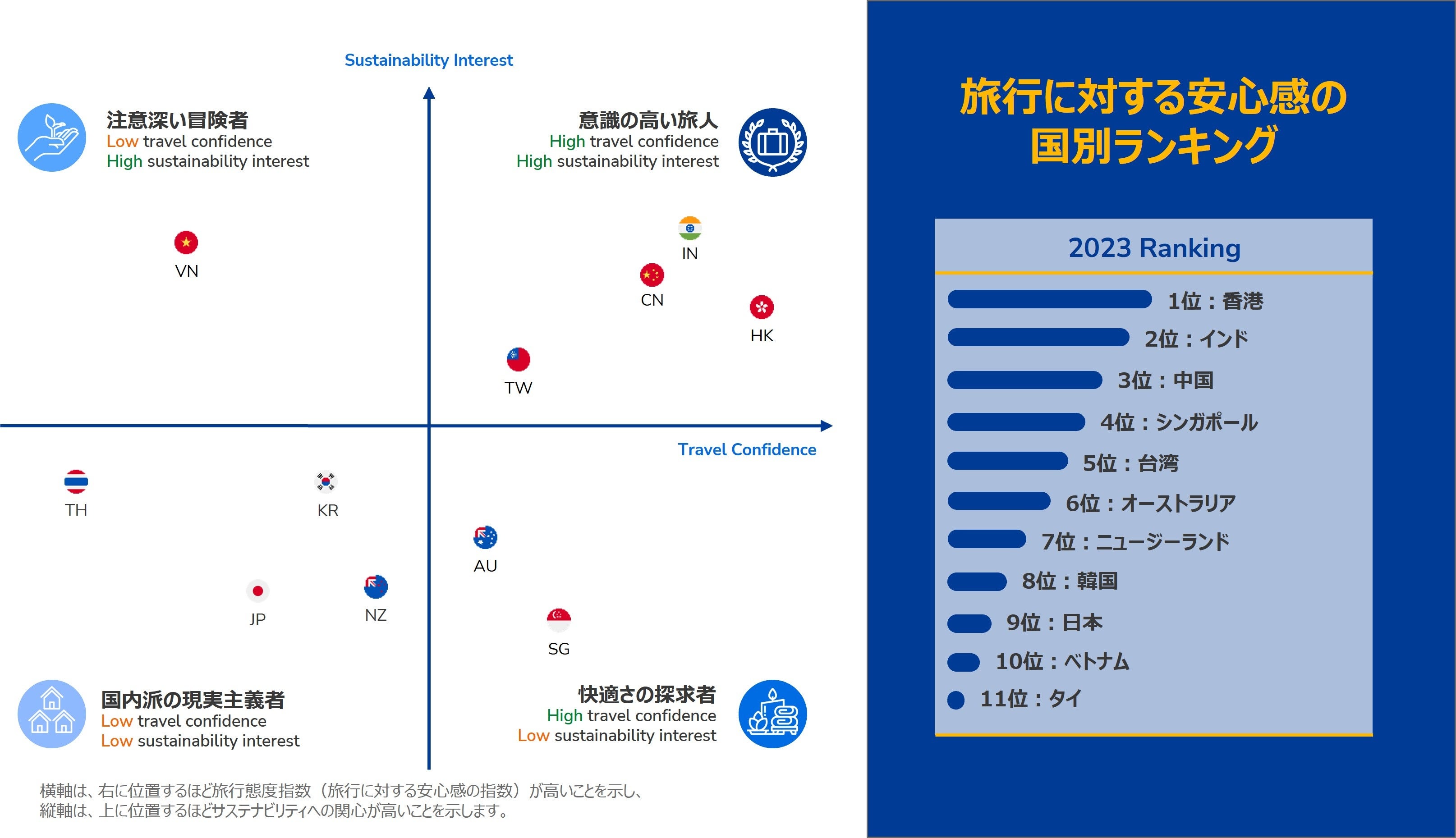 本旅行態度指数はAPAC全域において、各国における旅行態度と持続可能性への関心を掘り下げることを目的に、2023年4月~5月にかけてアジアおよびオセアニアにおける11の国と地域の8,800名を対象に実施されたもので、25年以上にわたり培ってきた独自のデータや知見とも組み合わせながら指数を算出しています。