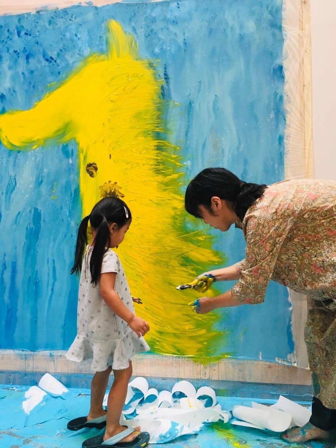 作家、映画監督、ラジオパーソナリティーなど幅広い分野の活動で知られる大宮エリーさんは、絵画やインスタレーションを手掛けるアーティスト、画家として国内外で活躍中です。病院や公園など公共の空間でも作品を手掛け、子どもたちとの共同制作や、自身が展開する「こどもエリー学園」を通じて、子どもの心を深く理解し、クリエイティブな世界へと導いてきました。