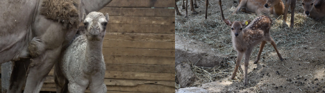 写真左 ヒトコブラクダ   4月27日に生まれ夏休み中に一般公開予定です。