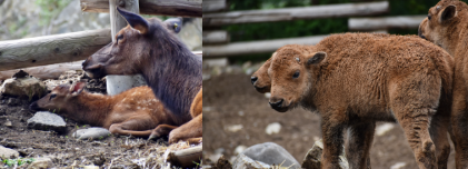 写真右 アメリカバイソン  親たちとは違い可愛さ満点です。   5月5頭