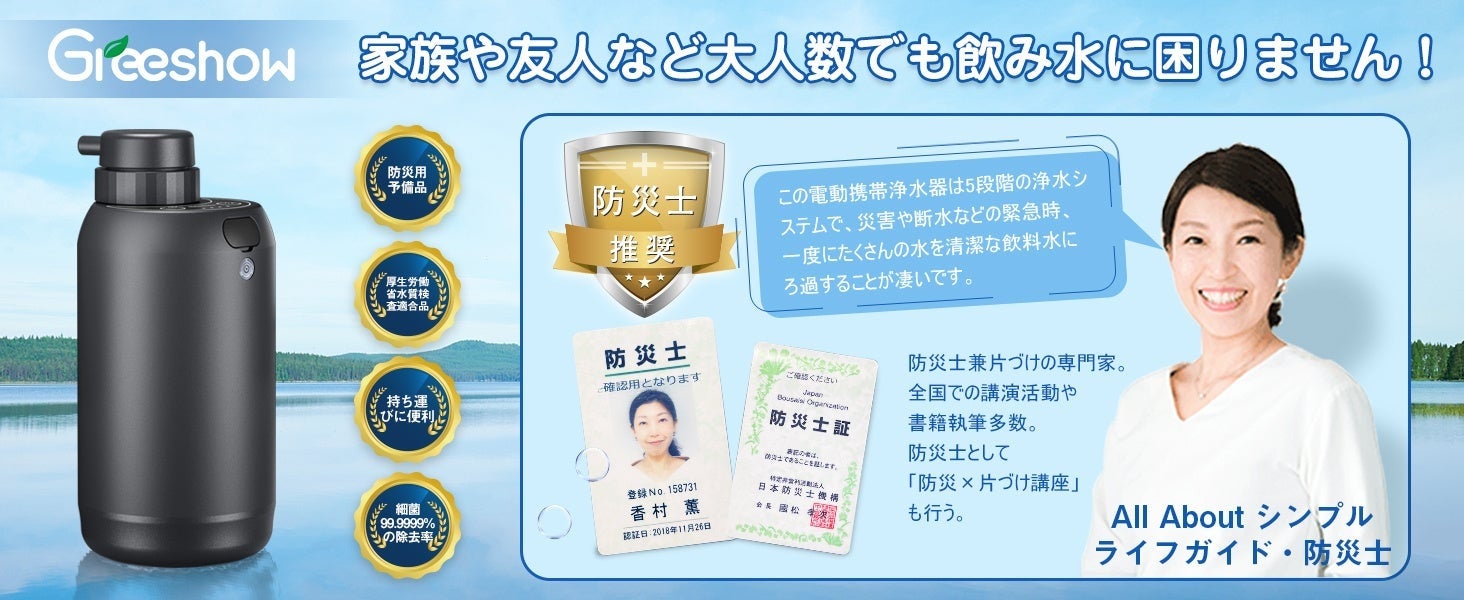 フィルターは、取り外し可能な設計となっており、古いフィルターを簡単に交換することができます。Greeshowの浄水器は、大容量バッテリーを搭載し、連続で1000L以上の水を濾過できます。独自の「5段階浄水システム」の仕組みをご紹介致します。