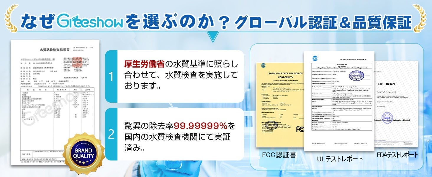 フィルターは、取り外し可能な設計となっており、古いフィルターを簡単に交換することができます。Greeshowの浄水器は、大容量バッテリーを搭載し、連続で1000L以上の水を濾過できます。独自の「5段階浄水システム」の仕組みをご紹介致します。