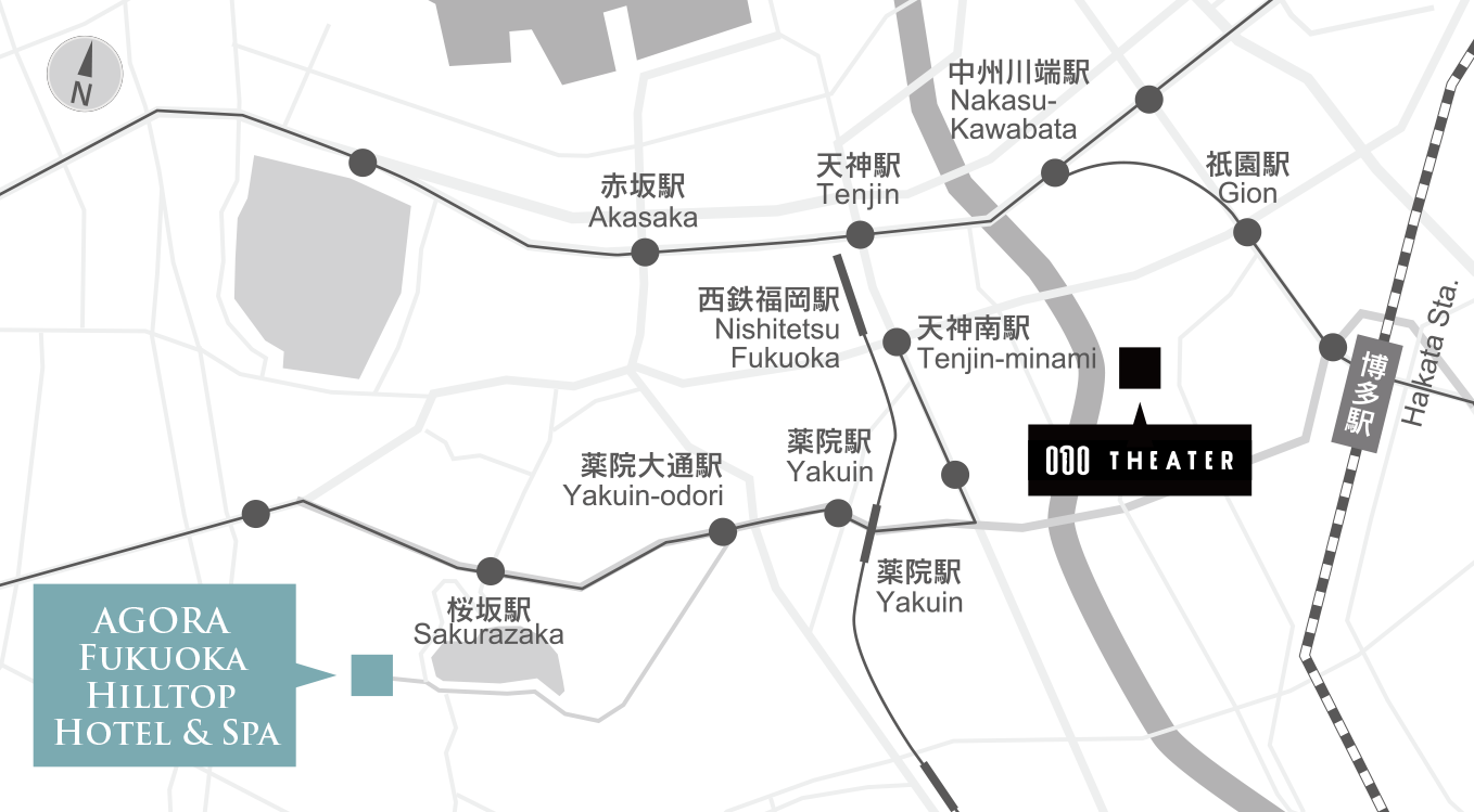 THEATER 010へのアクセス:アゴーラ福岡山の上ホテル&スパから車で15分