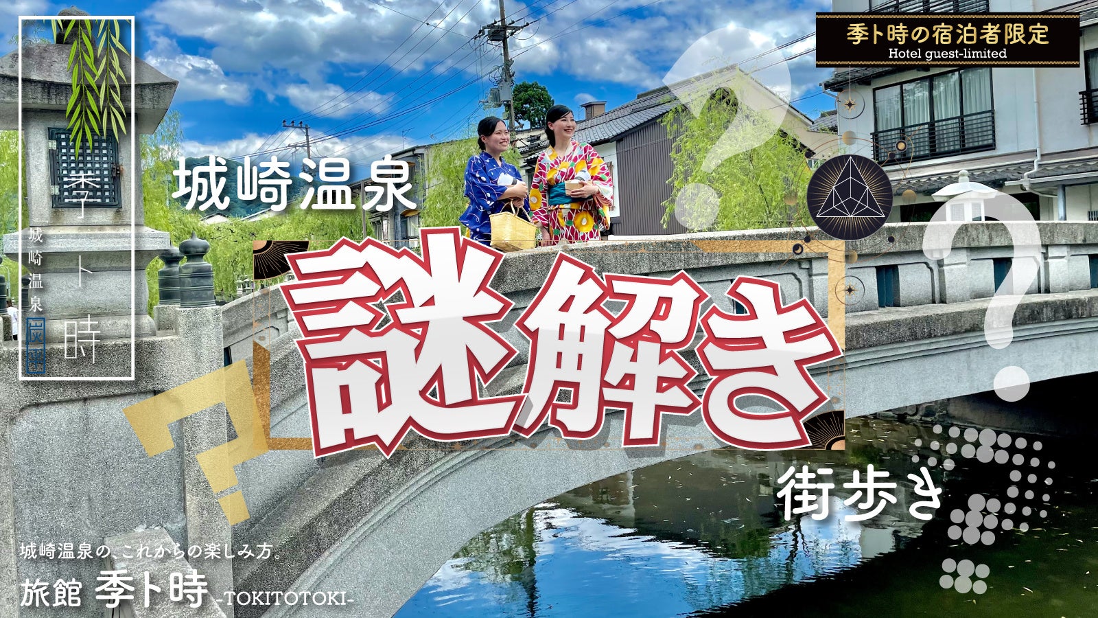 手がかりやヒントを求めて、街を歩きながら謎を解く「街歩き 謎解き」が日本全国で流行しています。「城崎温泉の、これからの楽しみ方」をコンセプトにする季ト時は、城崎温泉街を巡りながら謎を解く「城崎温泉 謎解き 街歩き」サービスを開始しました。