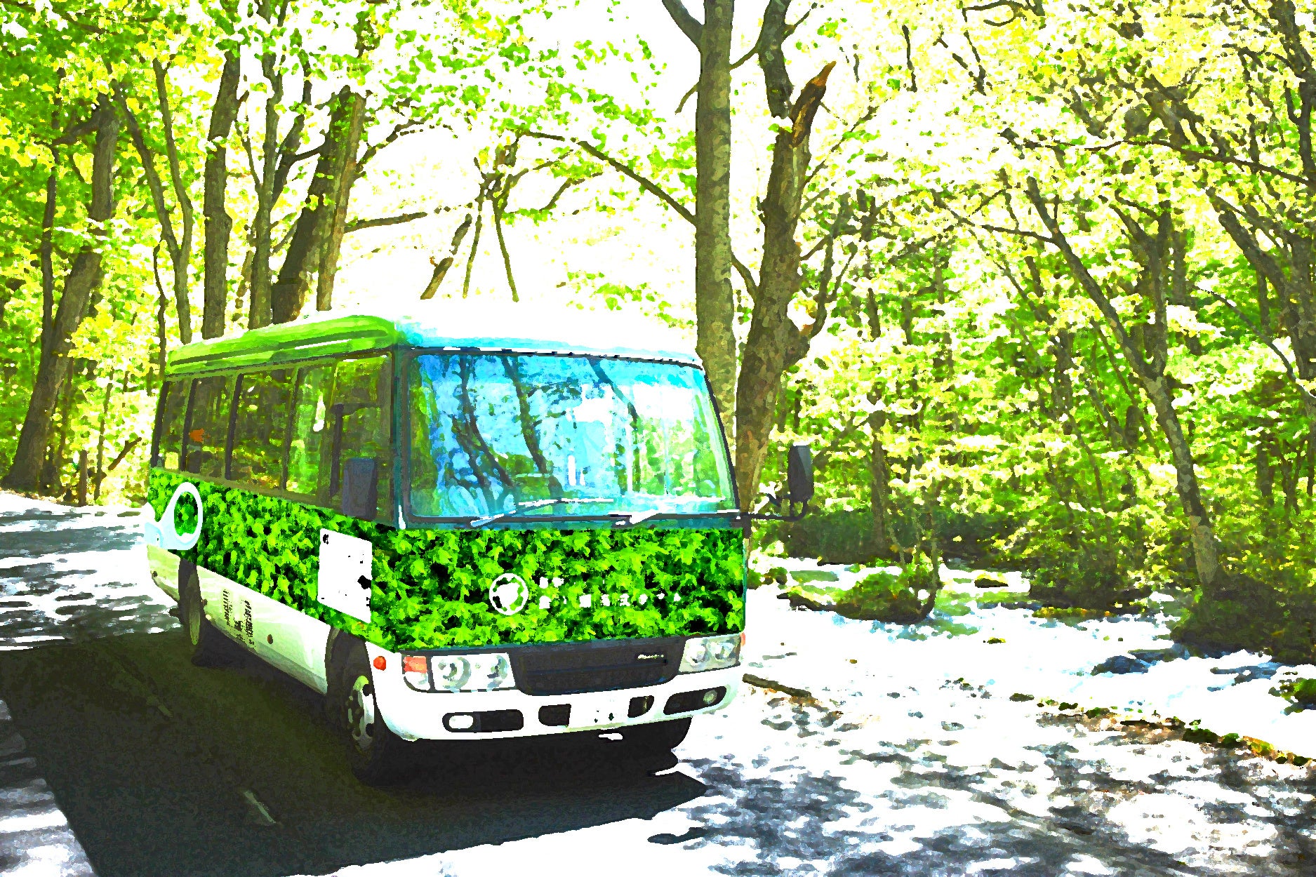 2024年6月には、当ホテルと奥入瀬渓流の中流エリアを結ぶ「苔シャトルバス」の車体全体を苔のデザインにラッピングして運行します。バスの車体のデザインにはルーペ越しに眺める苔をデザインし、繊細で美しい苔の魅力を表現しています。さらに、車内のカーテンや壁面には、コツボゴケやシノブゴケなどの奥入瀬渓流に生息する苔をイメージしたデザインを施すことで、渓流を散策する時だけではなく、バスに乗車する時からホテルに帰るまで存分に苔の世界の魅力を楽しめます。このバスは予約なしで利用することができ、奥入瀬渓流を代表する4つの名所を巡るバスです。