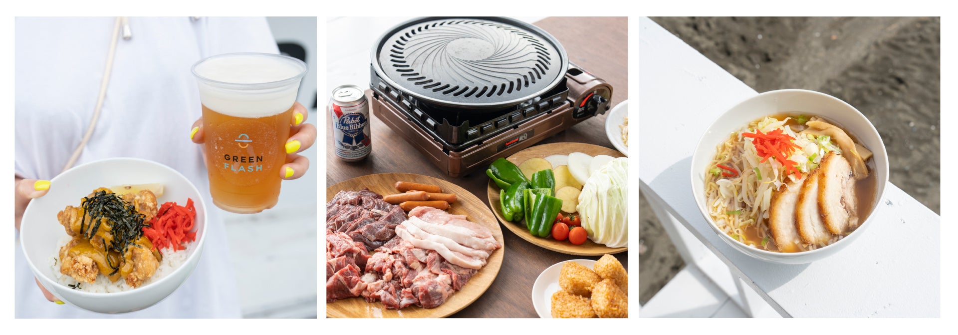 今年は「THE海の家」をテーマに、海遊びの疲れを癒やすこってり系のらーめん、焼きそば、丼ものなど、王道の海の家メニューを提供。BBQプランは更にパワーアップし、食材持ち込みプランもご用意。