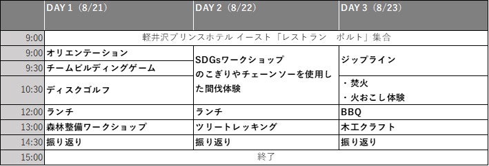 プリンスグランドリゾート軽井沢では豊かな自然にあふれた広大な敷地や豊富なアクティビティを活用し、軽井沢ならではの学び体験の提供として2021年よりイートンハウスとの連携をスタートしました。エリア内での「イングリッシュサマーキャンプ」2回目の開催となる今回は、3日間にわたるSDGsをテーマとしたプログラムを開催します。期間中はツリートレッキングやジップライン、森林の間伐体験を通し、お子さまの自立心を育みます。