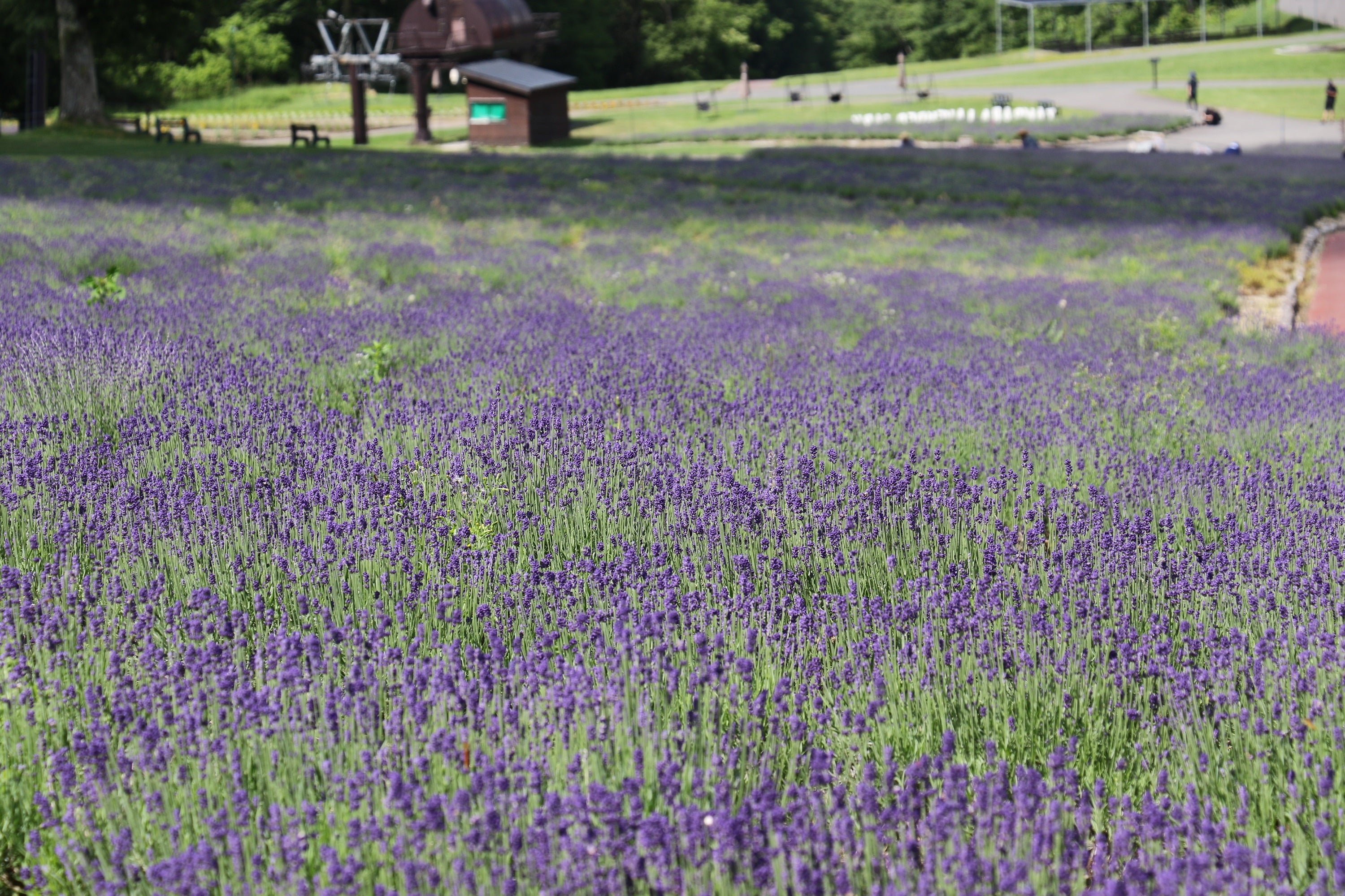 園内では早咲き品種の「こいむらさき」が見ごろを迎えました。こいむらさきは例年7月中旬ごろから見ごろを迎え、8月上旬ごろまでお楽しみいただける見込みです。園内のラベンダーは中咲き、遅咲き品種の開花が控えており、7月下旬に最盛期を迎える見込みです。