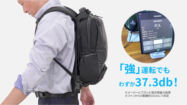 わずか330gを普段お使いのリュックにプラスするだけで、ハンディファンなどと違ってとハンズフリーで背中部分が涼しいリュックに変身します!