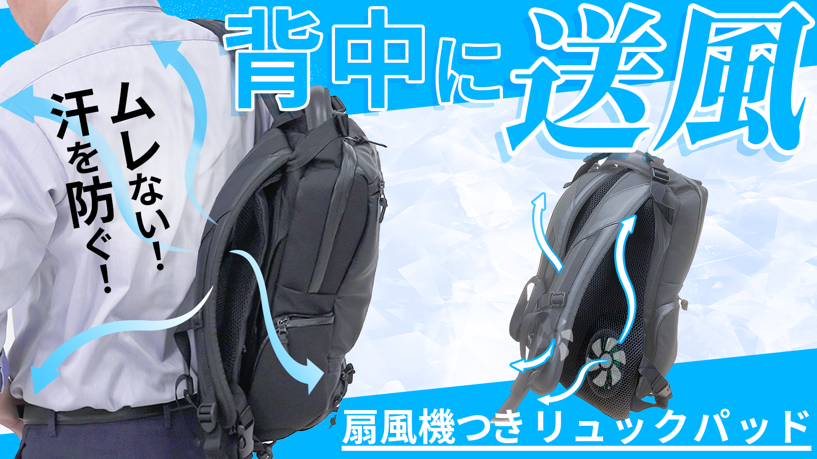 そんなリュック使用時の不快感を解消するため『扇風機つきリュックパッド』を開発いたしました。