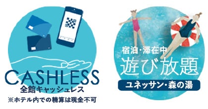 新しく生まれ変わる「箱根ホテル小涌園」は、箱根小涌園ユネッサンの水着で 遊べる「ユネッサン」と男女別温浴施設「元湯 森の湯」が宿泊当日のチェックイン前からチェックアウト日まで、何度でもご利用が可能です。また、セルフチェックインの導入やホテル館内でのお支払いはクレジットカードや二次元バーコードを利用 したキャッシュレス決済となり、利便性と快適さを兼ね備えた施設です。
