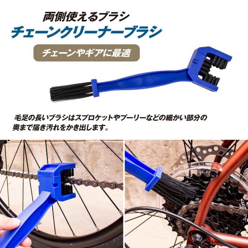 ブラシはディレーラーやクランク、プーリーなどの汚れ落としに最適です。