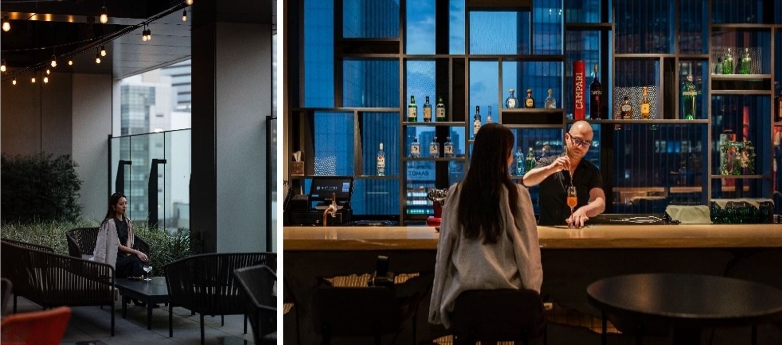 プルマン田町東京の9階に位置する、屋上の賑やかなバー。