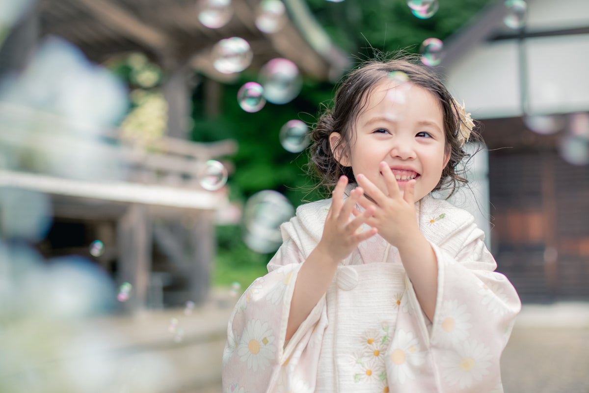 北海道函館市の由緒ある神社、函館八幡宮。秋が本番のイメージのある七五三。日差し感ある夏は爽やかなグリーンと共に優しい写真が撮影できるのが魅力です!