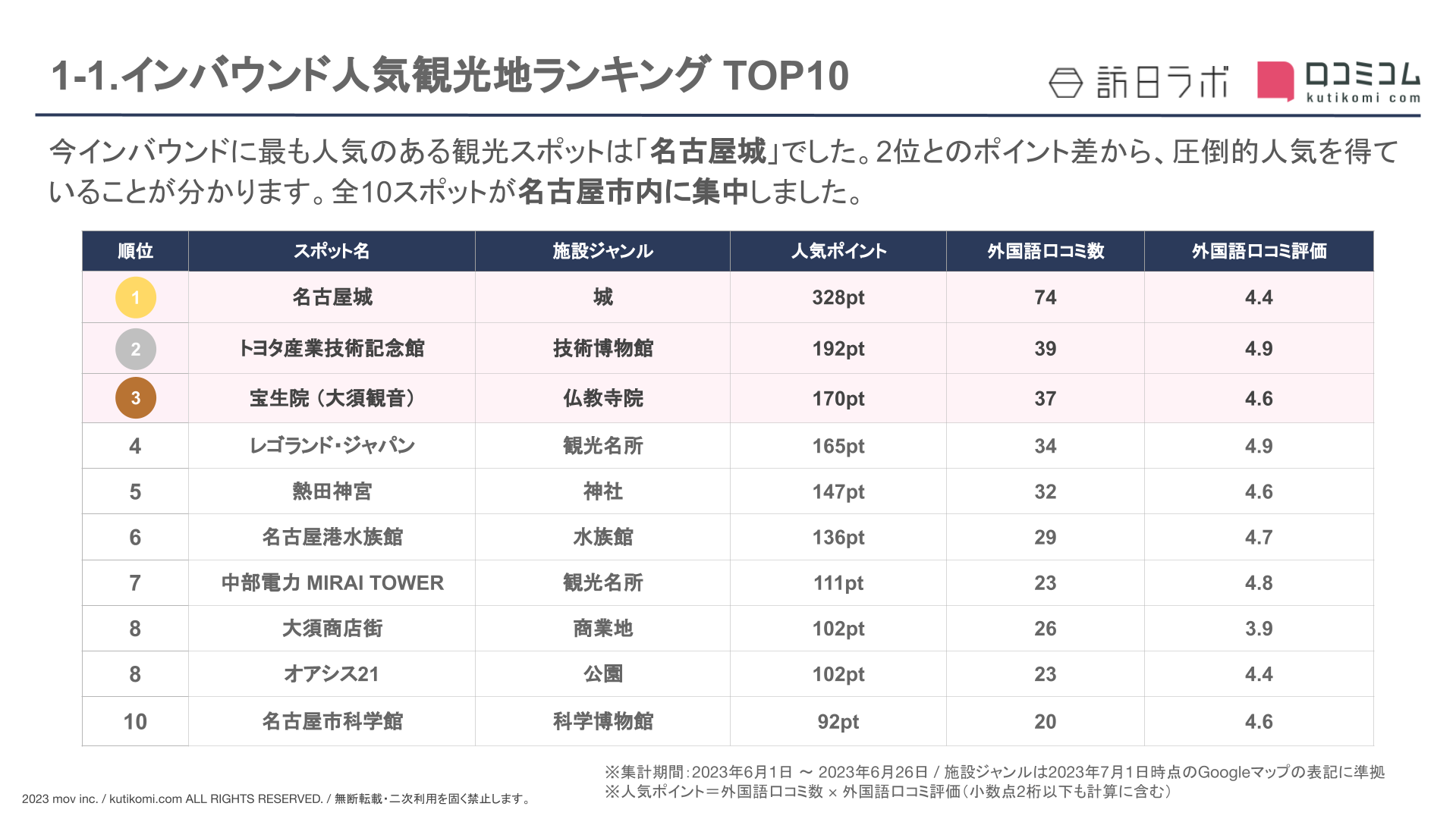 【独自調査】インバウンド人気観光地ランキング愛知編:コロナ後 最新の訪日客の支持を集めたスポットTOP10を発表 #インバウンドMEO
