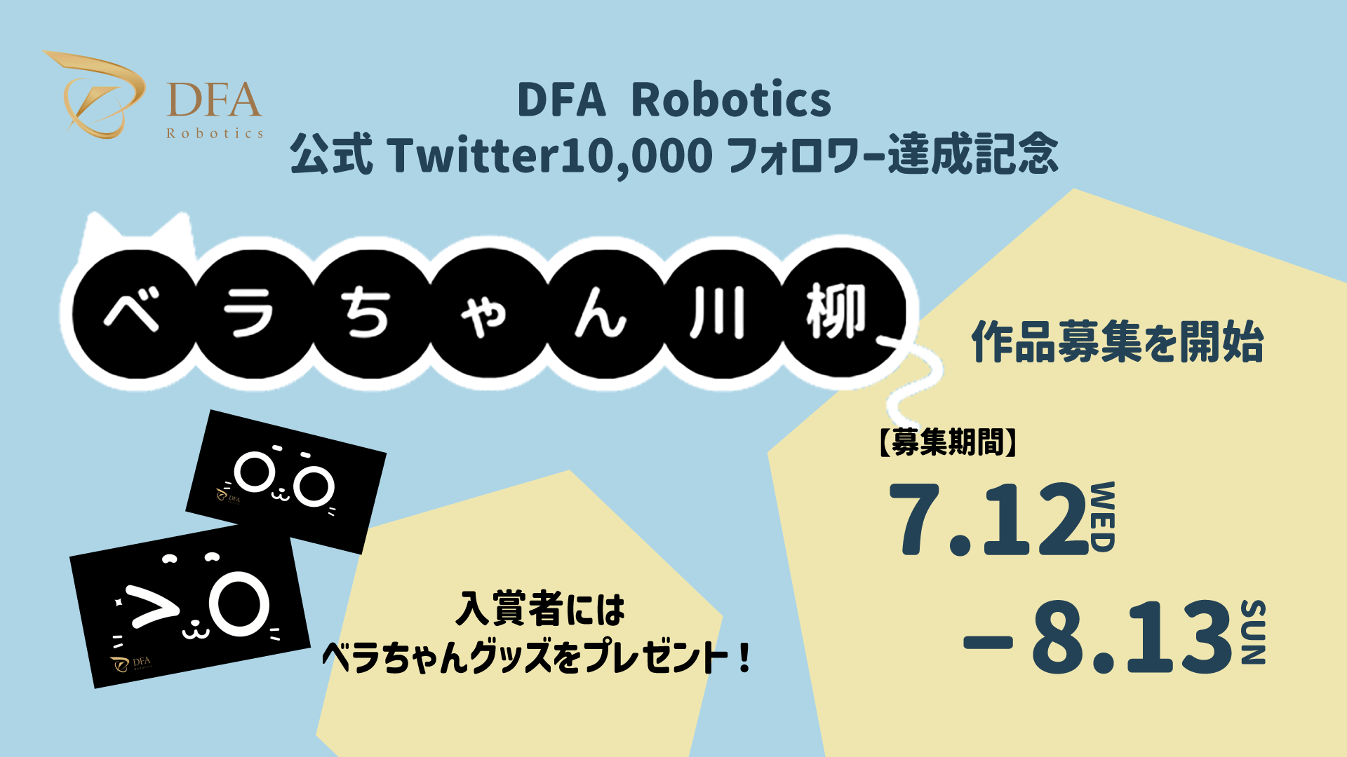 【DFA Robotics、Twitterイベント開催】公式Twitter10,000フォロワー達成を記念し、「第1回ベラちゃん川柳」の作品募集を開始