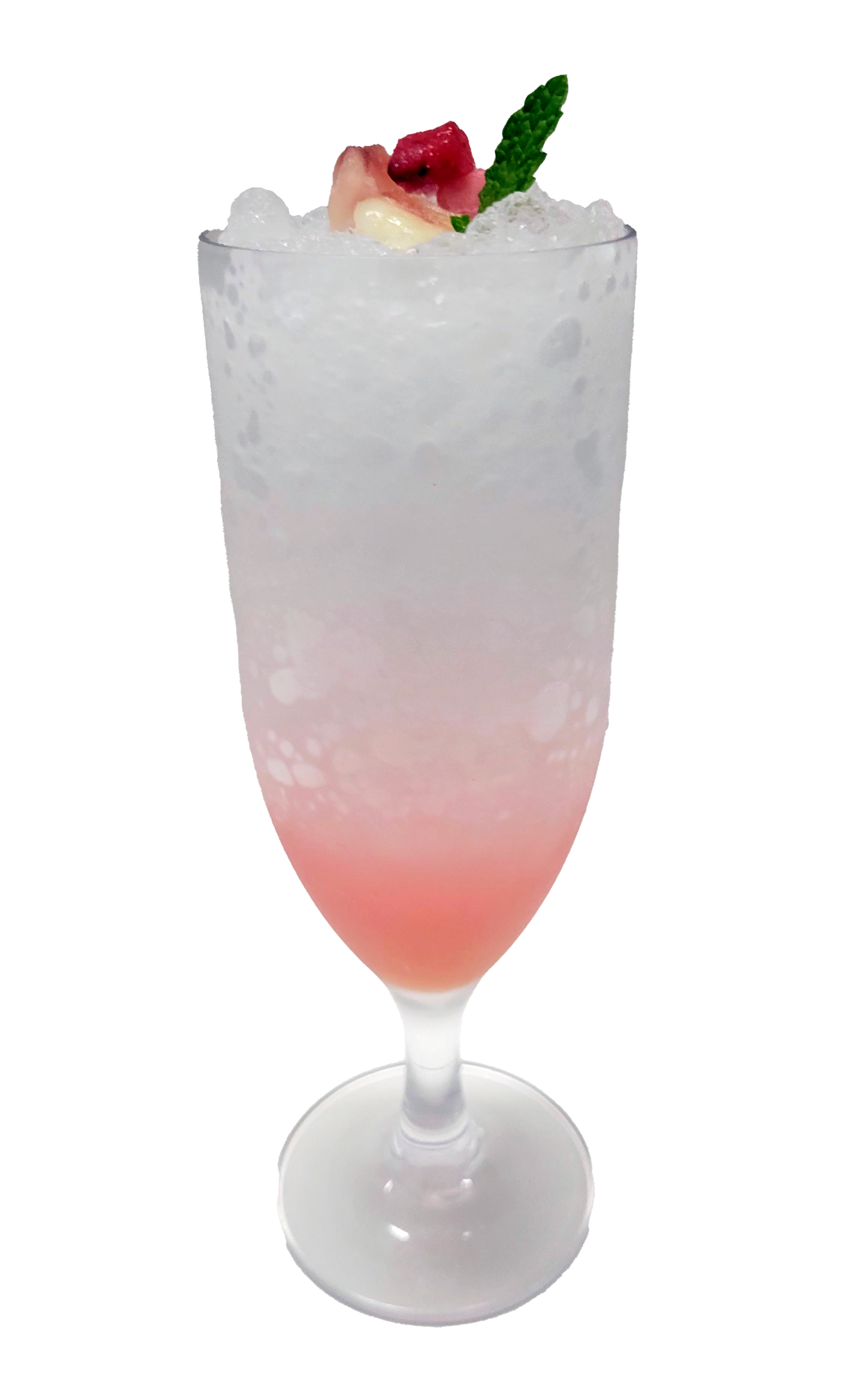 爽やかな桃が香る暑い夏にぴったりのフローズンドリンクです。最初によくかき混ぜてからお召し上がりください 。