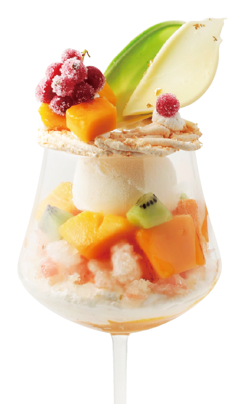 贅沢に果実100%のシロップをふんだんにかけたふわふわのかき氷をご賞味ください。