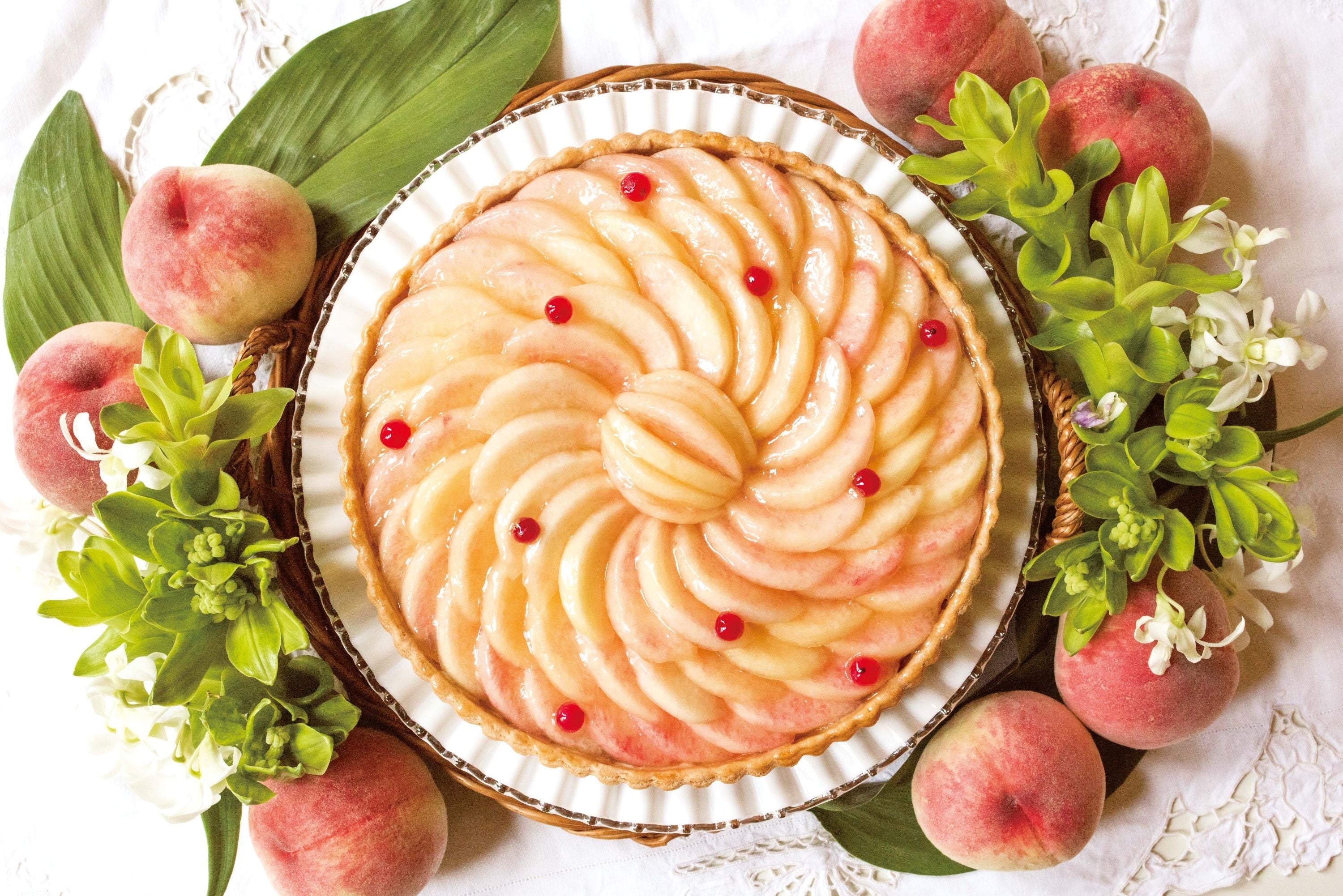 バター風味豊かな練りパイに、なめらかなカスタードクリームを詰め、甘く果汁たっぷりの旬の桃をのせて仕上げました。ジューシーな果肉と口の中に広がる甘〜い香り、桃ならではの美味しさをお楽しみいただけます。