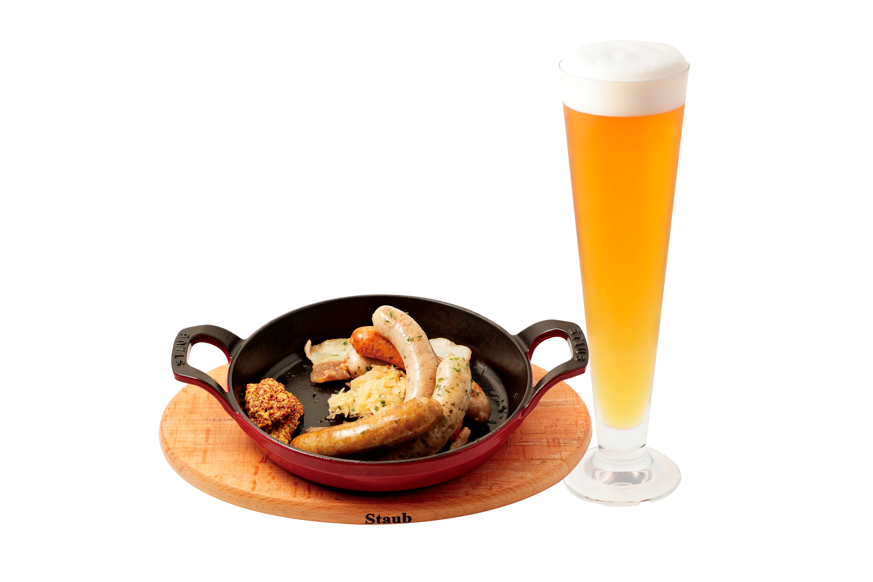 チョリソー、カレー、パセリ&チーズ、ハーブ、ブラックペッパーの5種のオリジナルウインナーと通常のビールより1.5倍熟成することで引き出した豊かな香りと舌に広がる芳醇かつ締まりのある味をもつキリンブラウマイスターは相性抜群です。