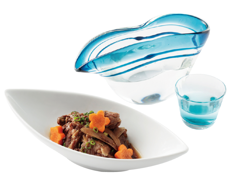 トロトロになるまで煮込んだ牛すじを蕎麦つゆベースに甘辛く、お酒が進むような一品に仕上げました。冷酒とセットになったお得な一品です。食前の一杯にいかがですか。