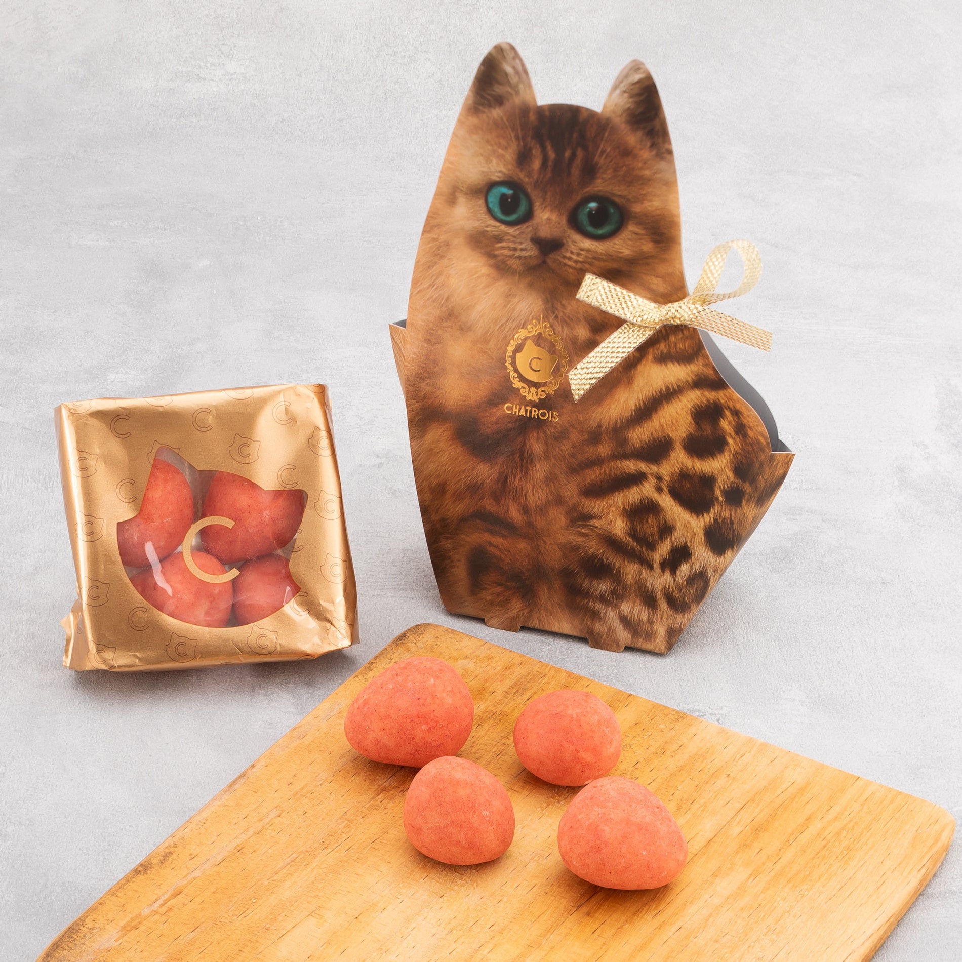 シャトロワは、3匹のネコ(トロワ・シャ)と、チョコレートをコンセプトにした洋菓子店です。猫の形をした チョコレートクッキーや、肉球をイメージして焼き上げたフィナンシェなど、こだわり抜いた素材を使い、モチーフのネコが女性の心をくすぐるあしらいはもちろん、猫好きな方にきっと喜んでいただけるスイーツ達を揃えました。