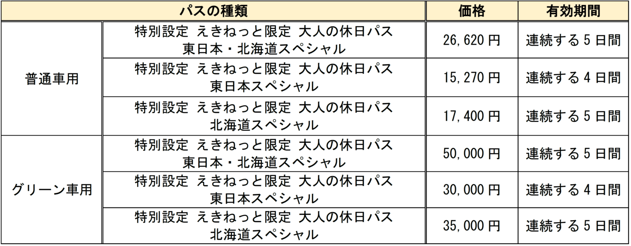 「特別設定 えきねっと限定 大人の休日パス スペシャル」