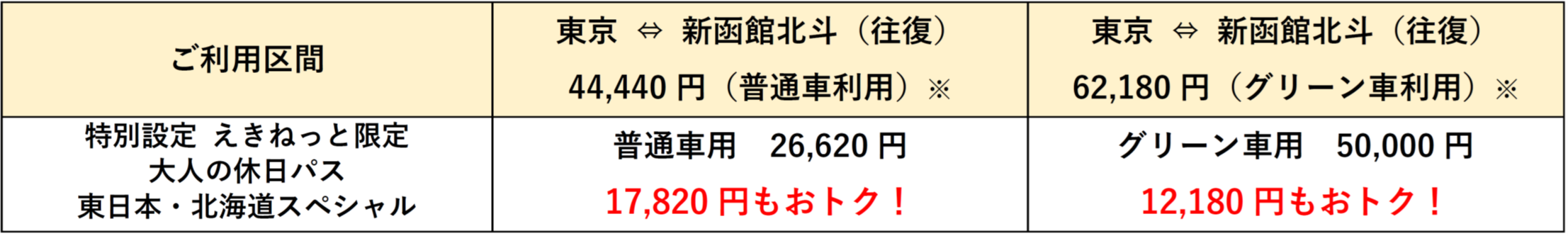※「東日本スペシャル」と「北海道スペシャル」は北海道新幹線(新青森~新函館北斗間)がご利用いただけません。