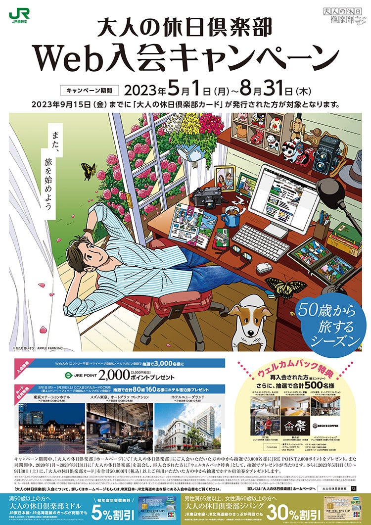 大人の休日倶楽部Web入会キャンペーン(https://www.jreast.co.jp/otona/cmp/web_nyukai.html)にてご確認ください。