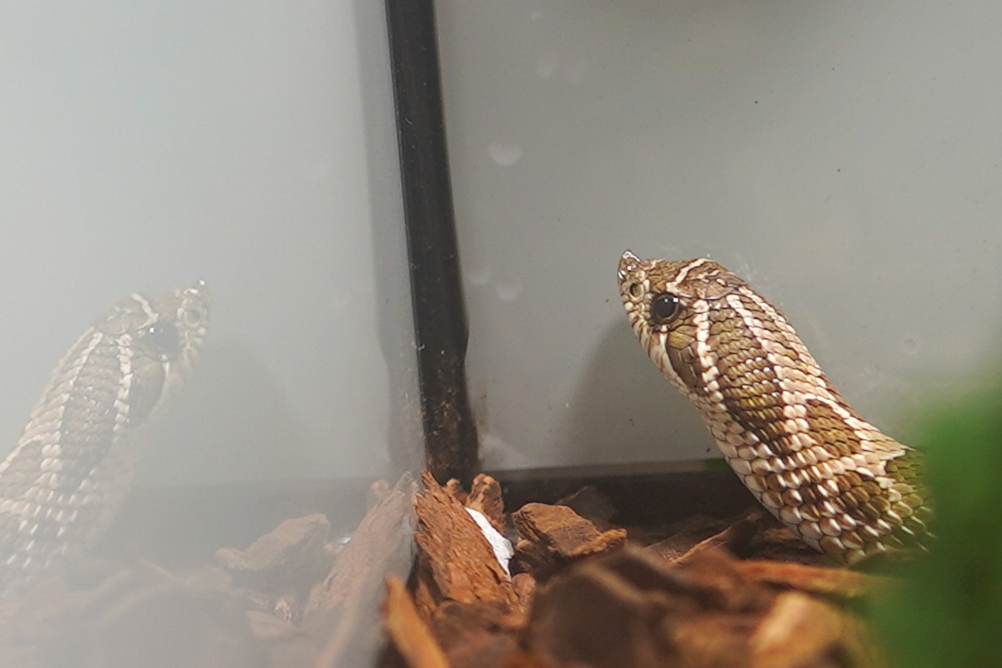 そんなエリアを、ガラス造形アーティスト「生田目礼一」が手がけた追加装飾に加え、新たに17種類の爬虫類、両生類、奇虫類を展示しパワーアップしました。