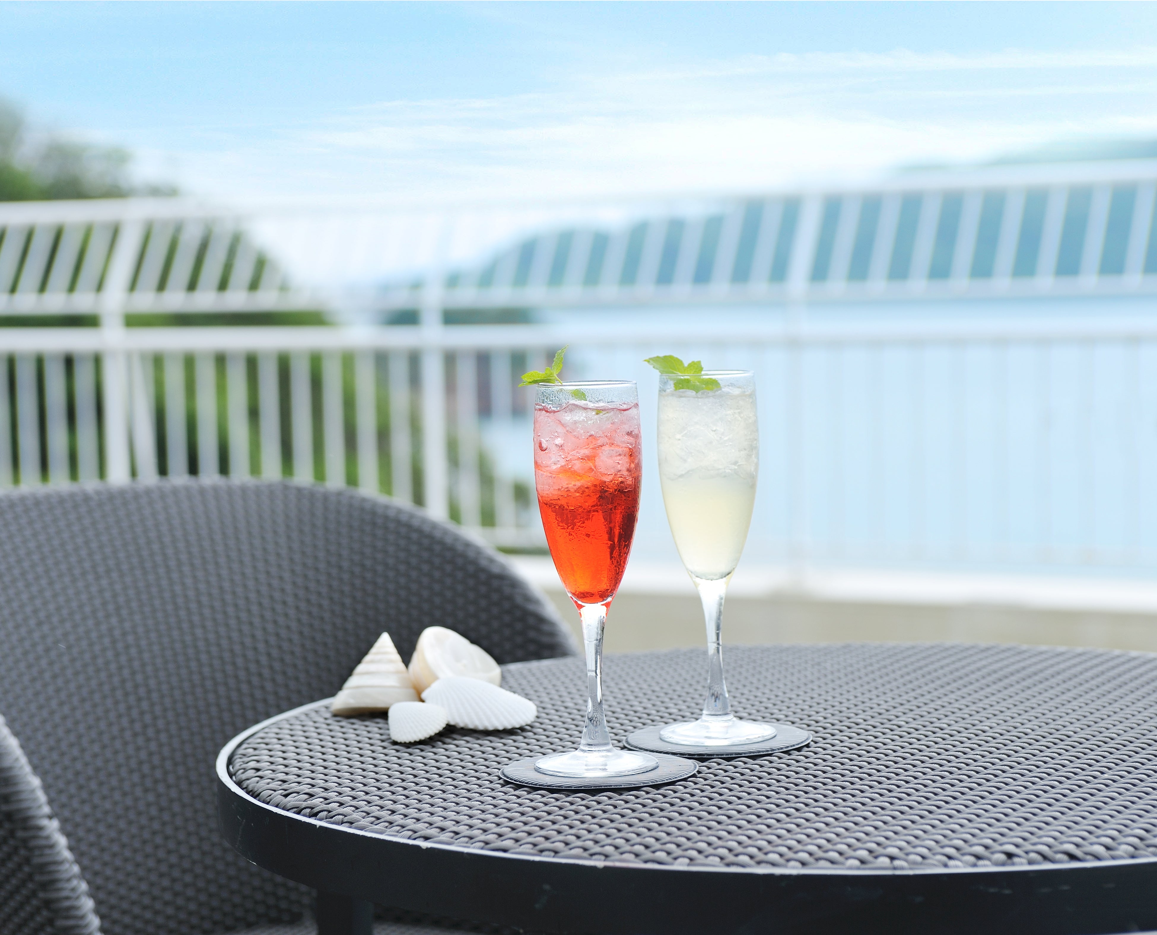 ワインやビール、ウィスキーなどを、セルフでご利用いただけます。昼間とは異なった表情を見せる夜の海を見ながら夏の夜をお愉しみください。