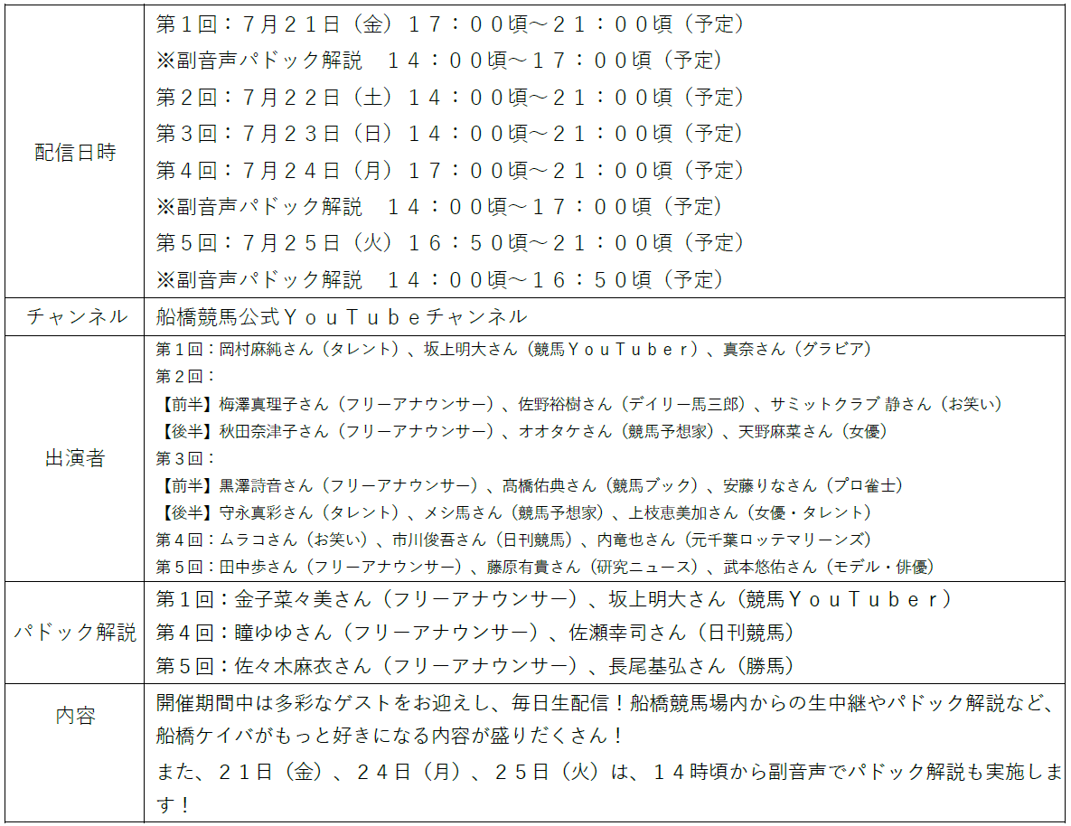 ※船橋ケイバ縁日は7月22日(土)、23日(日)のみ実施いたします。