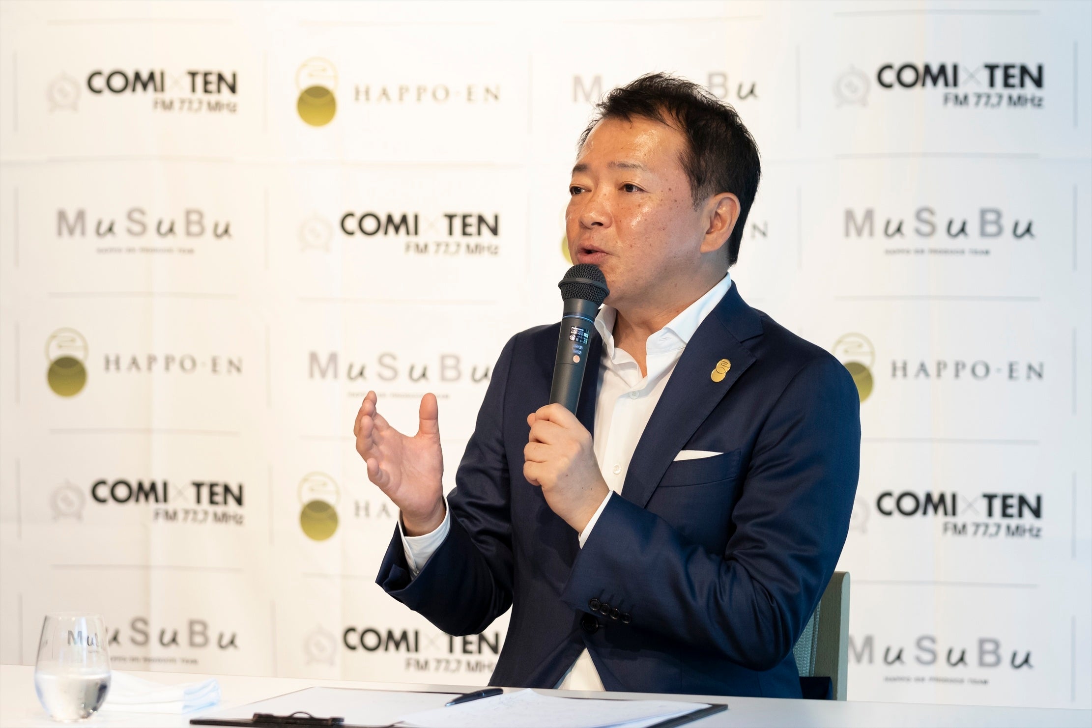 もともと地域の防災や災害情報の放送、地域活性化の要望、地域の情報発信から今発信したいことがある方が発信できるラジオ放送局としてこれまで活動してきました。この度、弊社社長と八芳園の井上社長との出会いから提携に至りましたが、弊社ラジオメディアの「コミュニティラジオ天神FM」での福岡や九州エリアの情報発信を東京の「MuSuBu」と連携することで、広範囲での情報発信とコミュニティ形成を行っていければと考えております。また今回の提携をきっかけに各地のコミュニティ放送局との連携の加速も期待しております。
