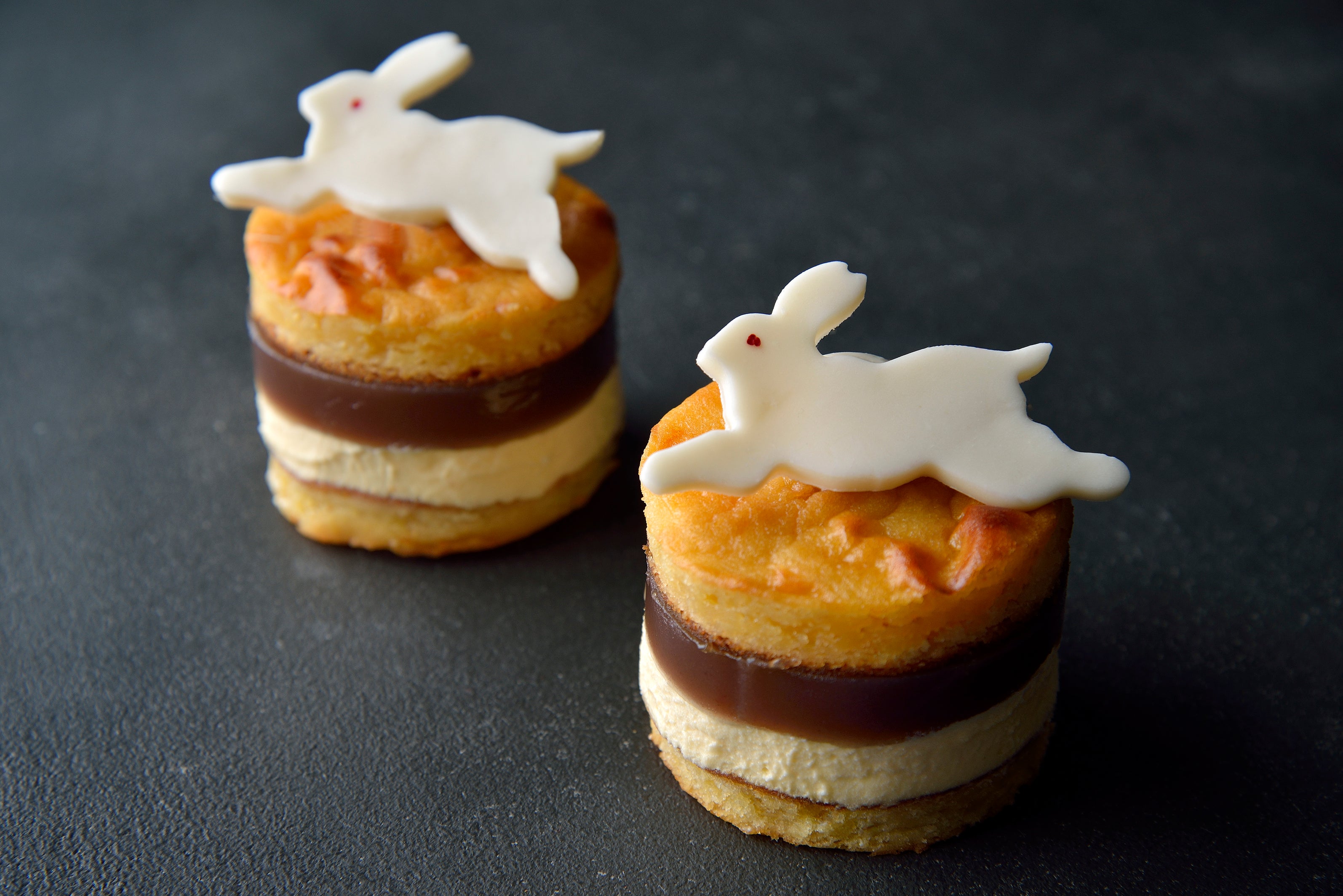 まんまるの月をうさぎが散歩しているように見立てた「スイートポテトあんバター」。黒蜜入りの羊羹と、カスタードクリームとバターを混ぜ合わせたクリームを黒ごま香るスイートポテトで挟んだ、和と洋がコラボレーションしたスイーツです。