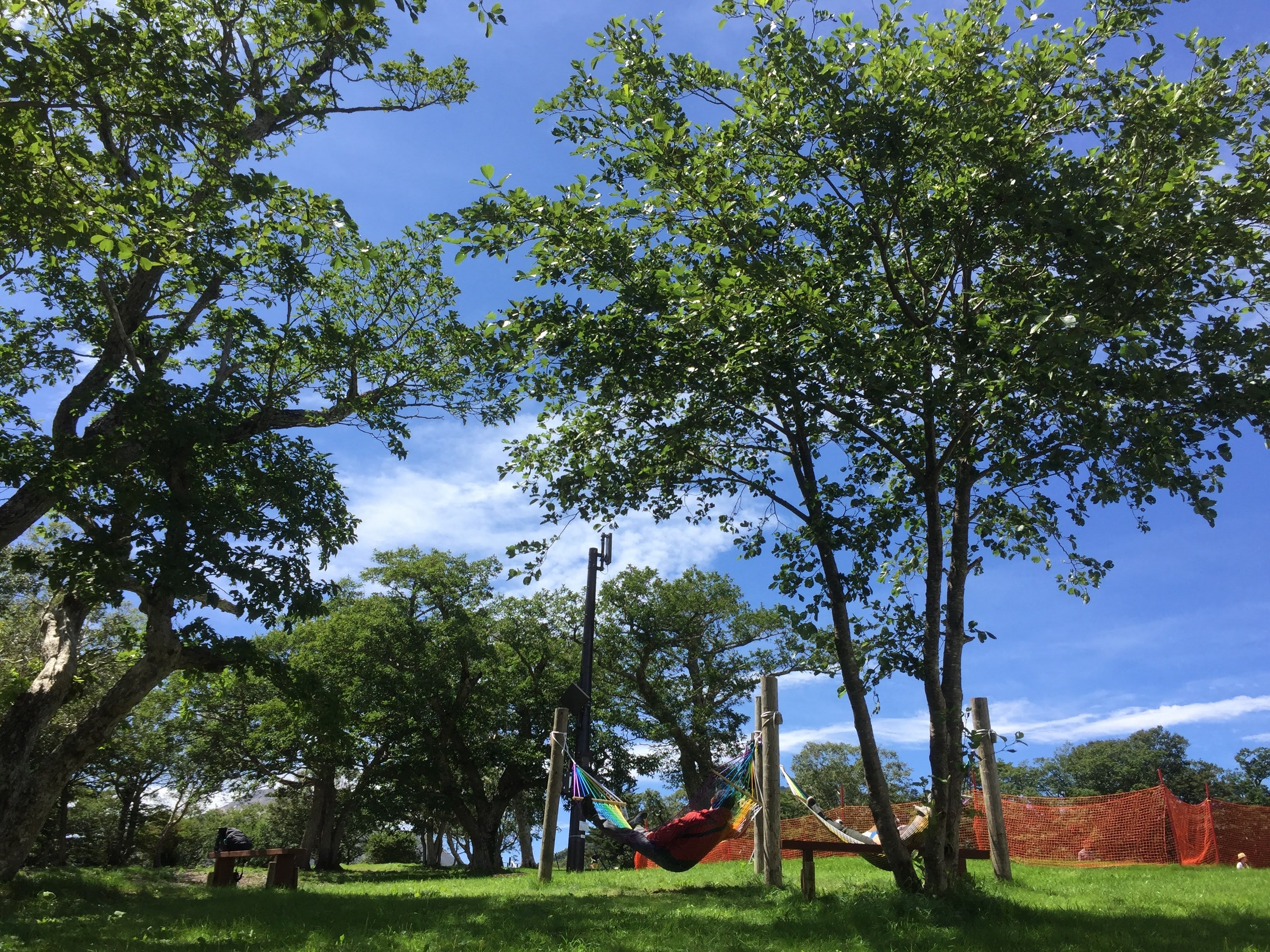 自然の中で、涼しい風を感じながらゆったりとした時間をお過ごしいただけます。また、真夏にしか見られない青々とした那須連山の絶景を望める「茶臼展望台」をはじめ「ハンモック広場」や無料で利用できる「ドッグラン」なども完備し、ご家族やご友人、ペットと一緒に涼感あふれる時間をお楽しみいただけます。