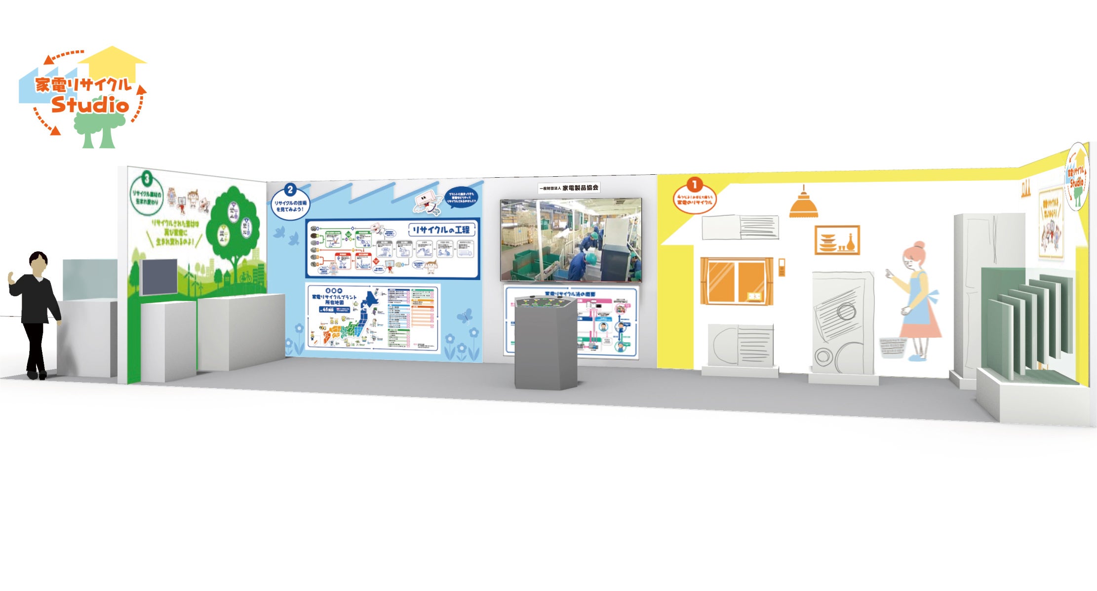 ※1: 家電製品協会調べ。 2022年7月時点で、リサイクルプラントや、自治体リサクルセンター以外で、家電リ サイクル専用(対象4品目)の常設展示を行っている一般施設として2022年8月の大阪(家電製品協会)が日本で初めて。2023年6月に国内2ヶ所目として東京にオープン。