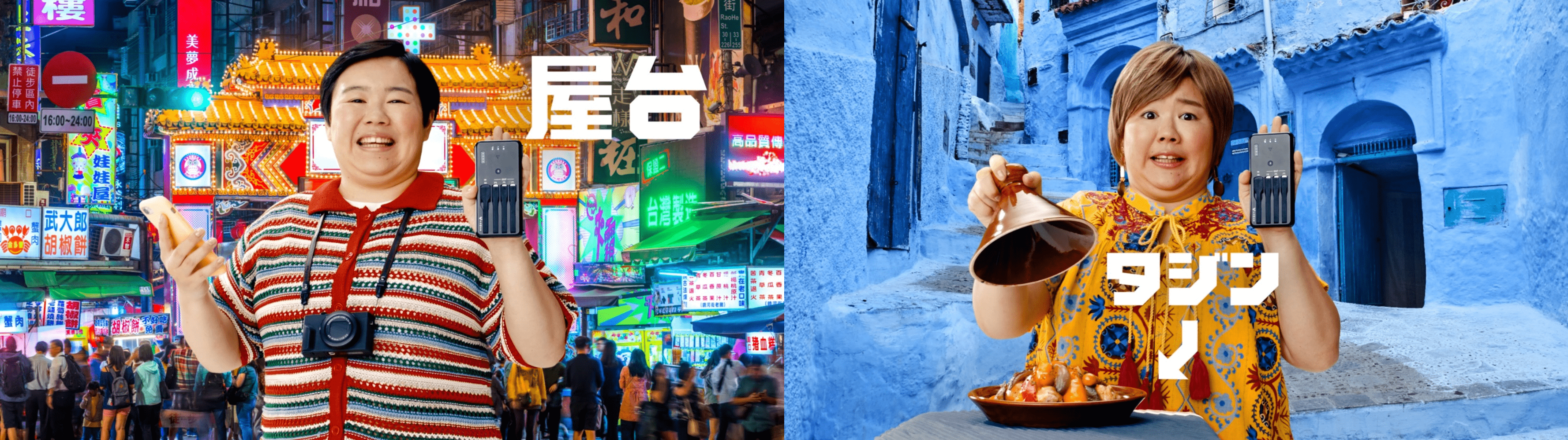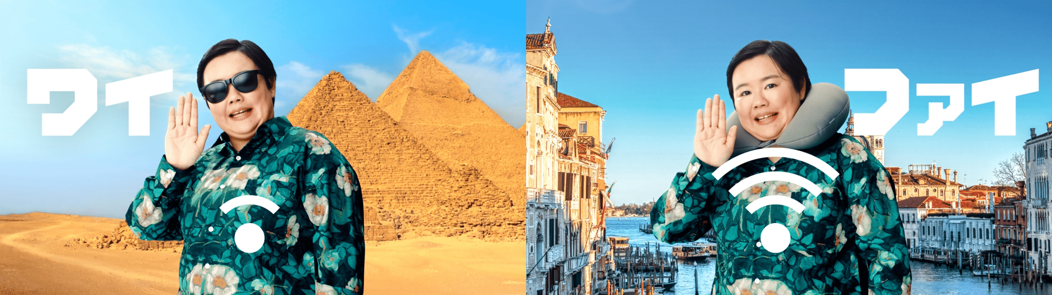 そのため、今回のWebCMには20代、30代から愛されるキャラクターとして人気上昇中のやす子さんを起用いたしました。CMでは、やす子さんがサクッとレンタルできるWiFiBOXを片手に、「はい~」にちなんだ国や場所、グルメを楽しく旅していきます。