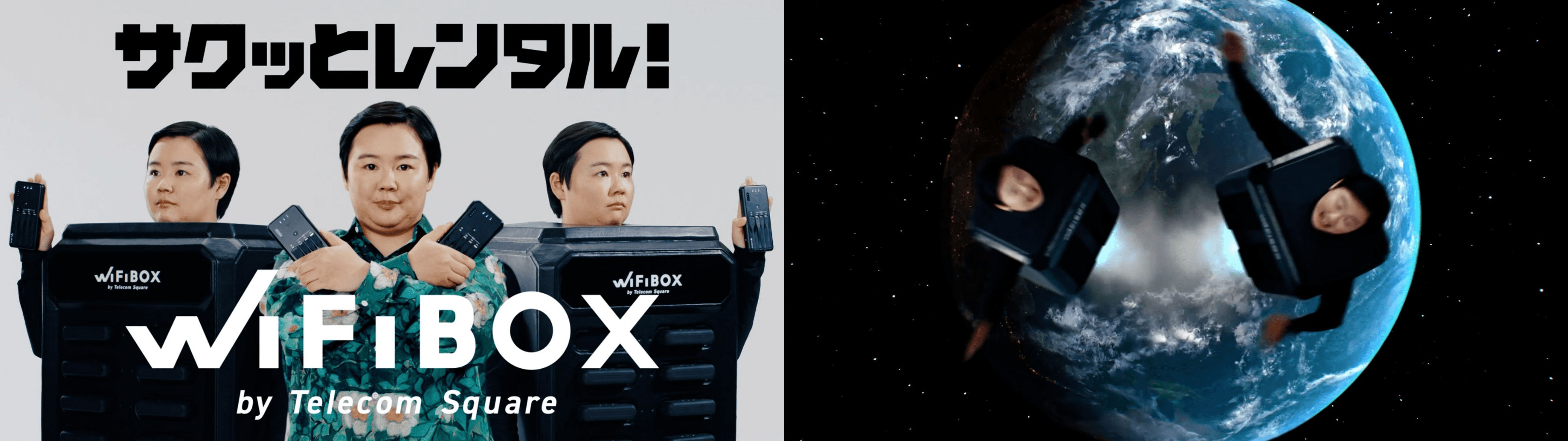 今回のCMは、やす子さんのお馴染みギャグ「はい~」にちなんだ韻を踏んだセリフや観光地を言いながら、やす子さんがテンポよくWiFiBOXと共に世界各国を旅する内容です。海外の絶景や名物を前にしながら、観光客に扮したやす子さんが次々に登場。最後には巨大なWiFiBOXの貸出機を身にまとい「WiFiBOX子ちゃん」となったやす子さんが、宇宙へと飛び出していきます。十変化するやす子さんと、耳に残るリズミカルなCMをお楽しみください。