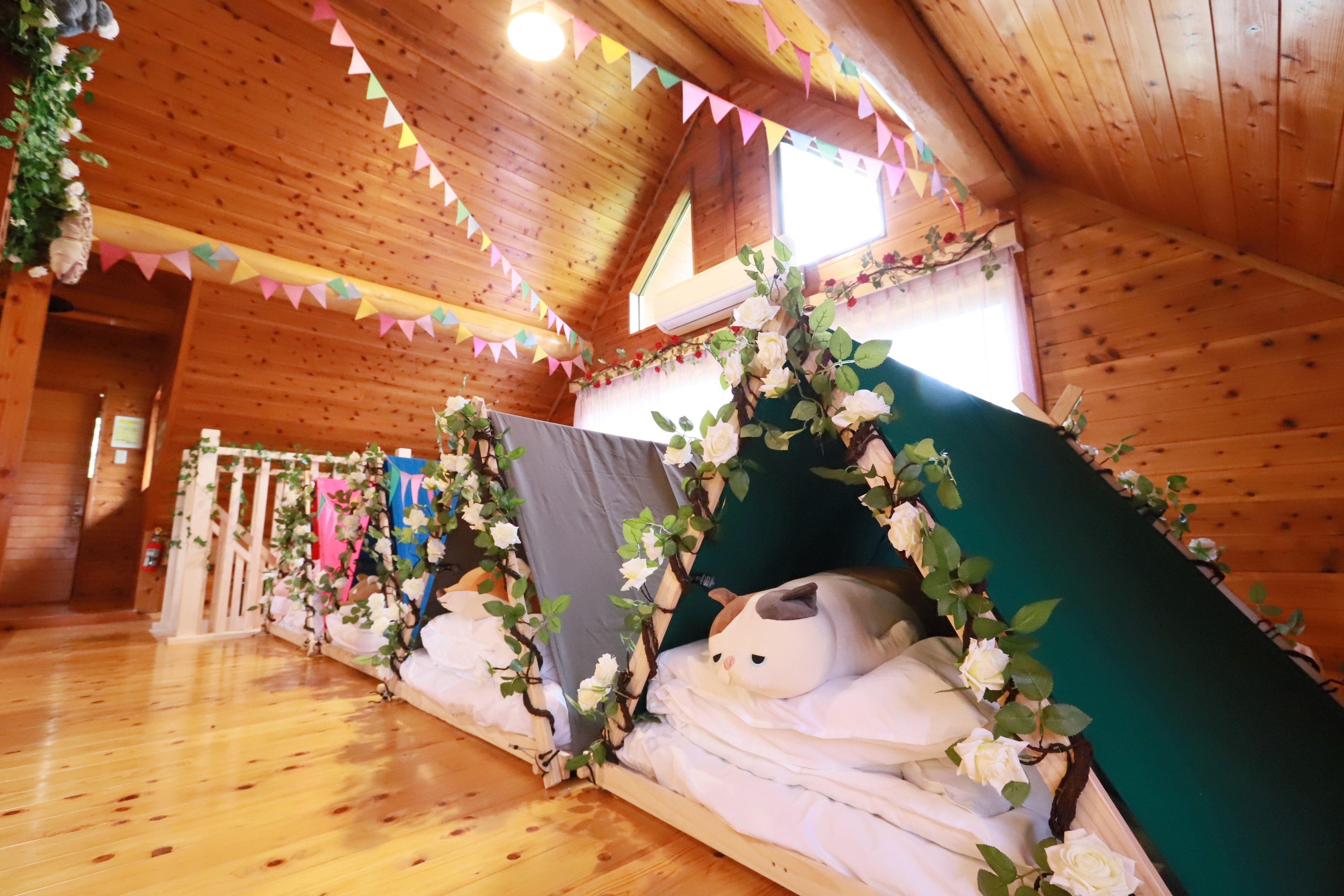 コテージ内にはお子様に喜ばれる個別テントや100インチプロジェクター、任天堂switchが備えられており、肩湯付き浴槽を装備した浴室もある為、贅沢に過ごすことができます。