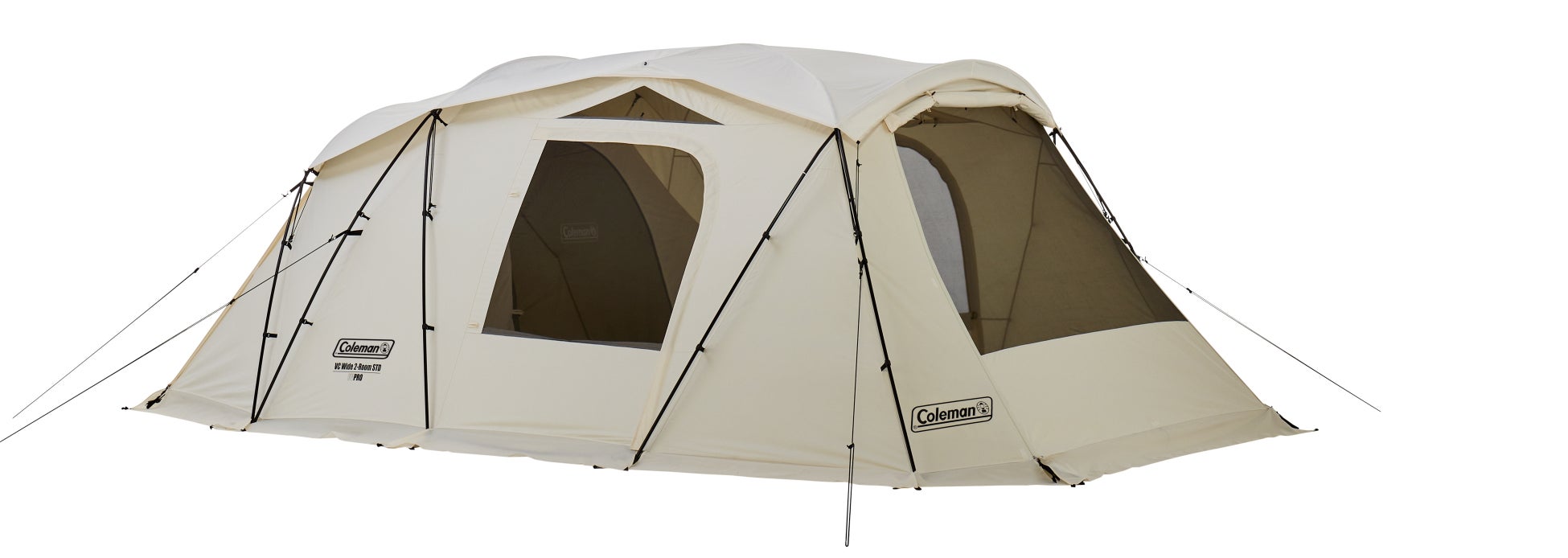 バリューコットンを使用した2ルームテント「VCワイド2ルームSTD」は、広々とした空間と通気性の良さが特徴で、4〜5人までの寝室を装備したファミリー向けテントです。フライシートにはコットン比率60%のバリューコットン生地を採用。ナチュラルな風合いをとことん楽しめる他、結露を抑えるメリットもあり雨の日でも安心して使用可能です。機能面においては、テントフロアを守るグランドシートと雨や紫外線から生地の劣化を軽減するルーフフライを付属。またフルスカートのため、夏は隙間からの害虫を、冬は冷気をシャットアウトします。インナーを外せば大きなスクリーンタープとしても利用可能で人数や状況に応じて、自由自在にアレンジが可能です。