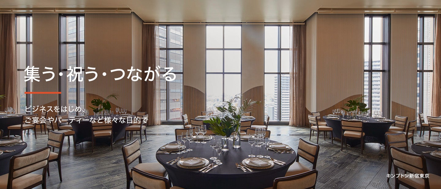 サンフランシスコにベースを置く、キンプトンホテルズ&レストランツは、1981年にアメリカで誕生した、ユニークで特徴的なデザインがコンセプトのラグジュアリーライフスタイルホテルのパイオニアです。日本では2020年のブランド初上陸から3周年を迎える「キンプトン新宿東京」。今までとは少し違う個性豊かなイベントが開催できる、ユニークなイベントスペースを備え、ウェディング、アートエキシビション、ソーシャルイベントはもちろん、ファッションショーの舞台にもなるアートギャラリーや、壁一面の大きな窓がクリエイティブなアイデアをかきたてるボールルームなど、インスピレーションを創出する空間をご用意しています。お問合せ:03-6258-1111(代表)
