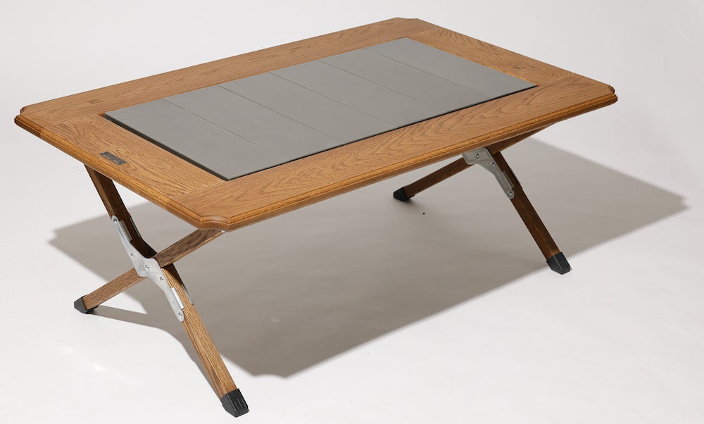 大人気のアイアンテーブルに、両ブランドのロゴを組み合わせたプレート付きのGO OUT限定モデルをリリース。
