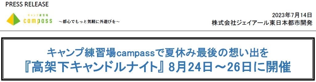 夏休みの終わりに、夏をしのぶ『高架下キャンドルナイト』をキャンプ練習場campassで実施いたします。