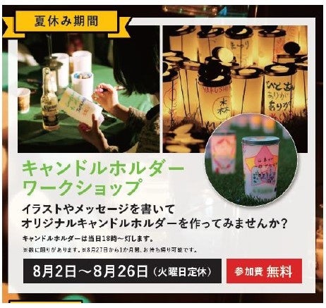 ◎夏休み期間(8月2日~26日まで)、キャンドルナイトを彩るメッセージキャンドル制作のワークショップを行います。
