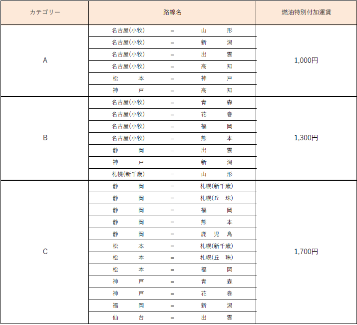 なお、燃油特別付加運賃は、シンガポールケロシン市況価格および為替レートの変動に応じて、 1ヶ月毎に見直しております。