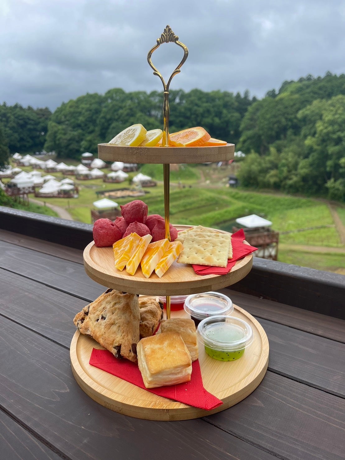 「THE FARM カフェ」シェフがプロデュースしたアフタヌーンティータワーは、伝統的なスコーンやチーズ、スイーツ各種をふんだんに盛り合わせたオリジナルセットで、ドリンクも厳選し高級ホテルで使用される茶葉をふんだんに使った3種のアイスティーをご用意しています。