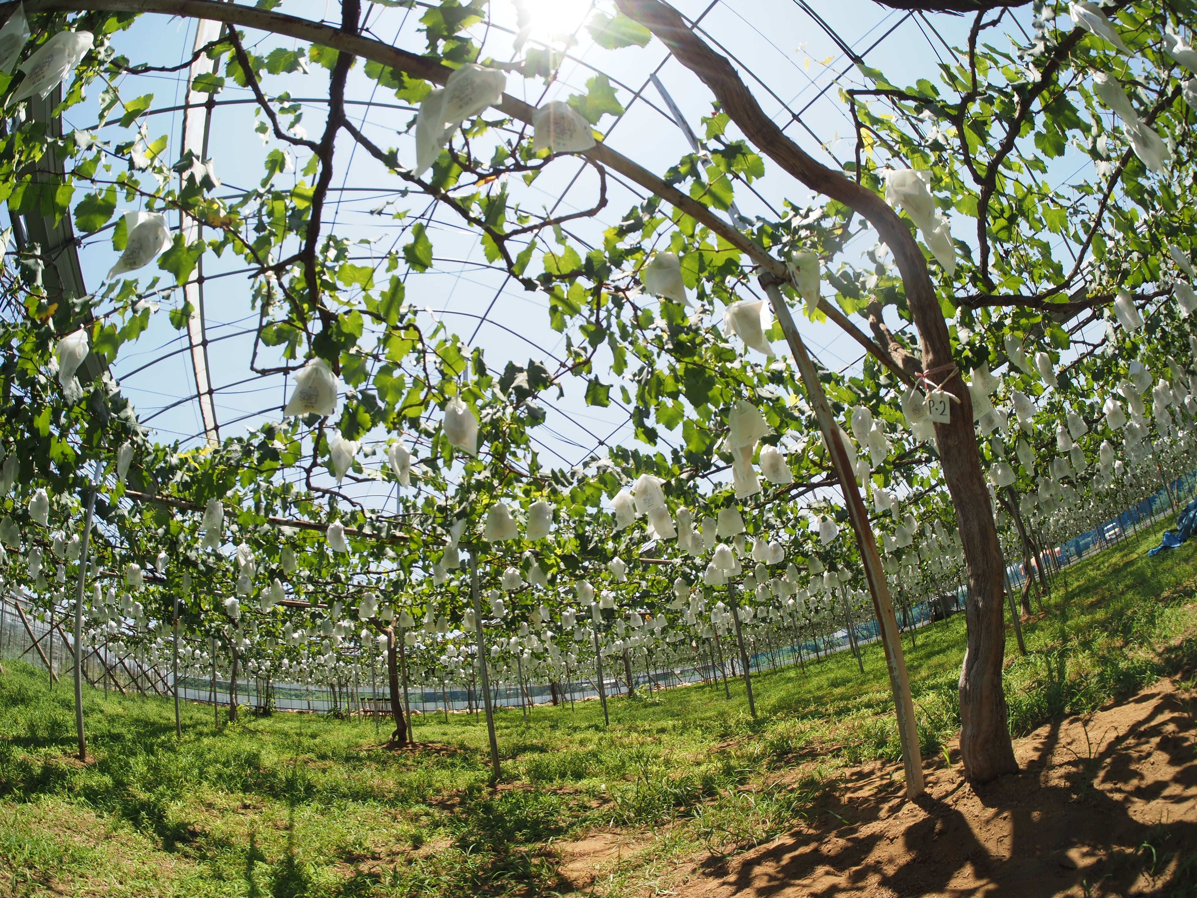 千葉県栗源地区は千葉県内でのぶどうの名産地です。山梨や静岡といった全国規模の名産地が9月に取り頃を迎える為、ぶどうは秋が旬というイメージがありますが、栗源地区では、それより早く出荷するために、ハウス栽培や加温をして8月に取り頃を迎えるように合わせた栽培をしております。