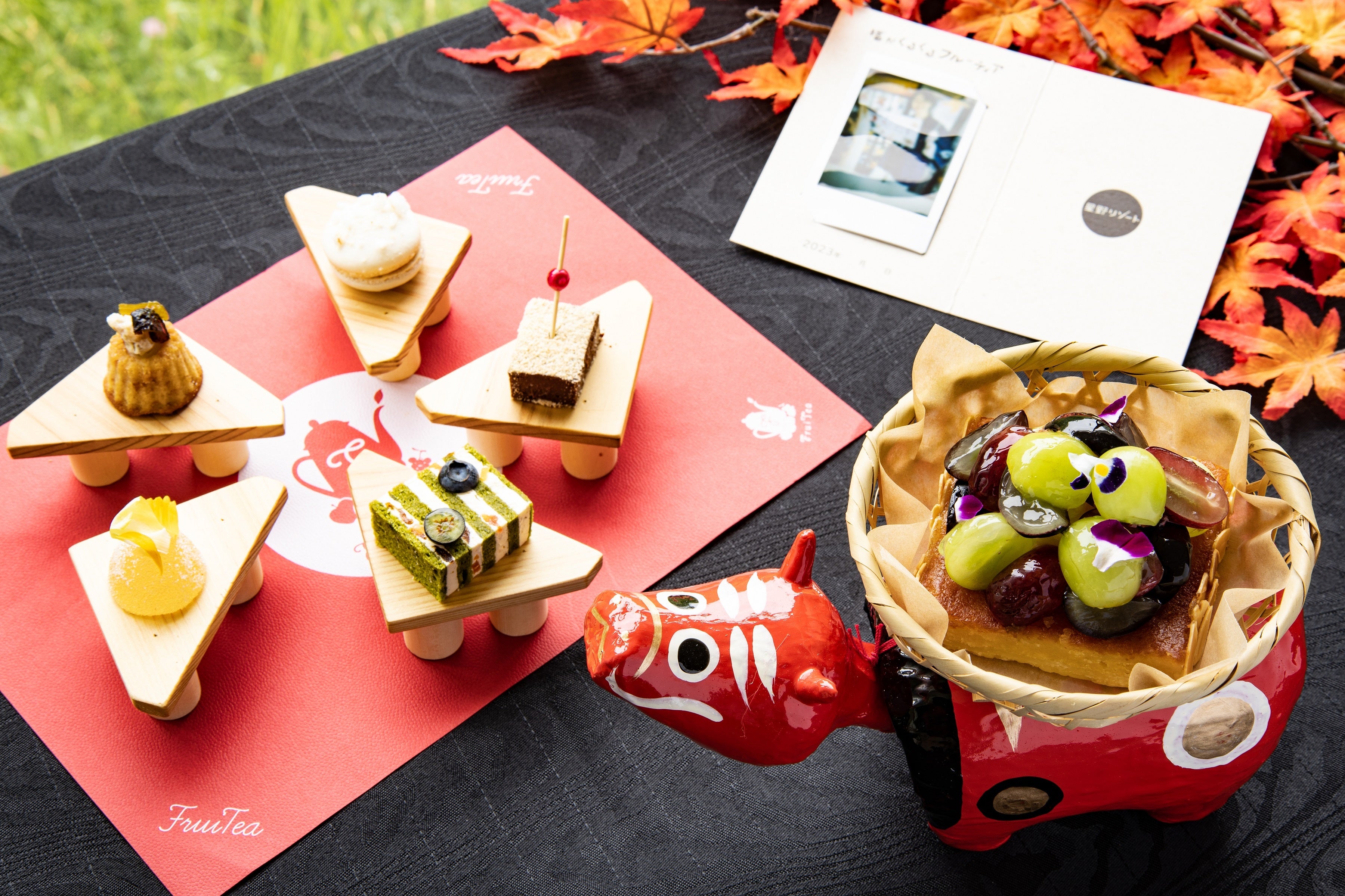 車内では、当ホテルが開発したオリジナルのスイーツセットを楽しめます。スイーツが盛られる器は、「かざぐるま」や「赤べこ」など地域の縁起物をモチーフにしており、美味しいものを食べて幸せになってほしいという想いが込められています。季節のタルトは、ぶどうがたっぷり使われた1品になる予定です。また福島県郡山市にある「ふくしま逢瀬ワイナリー」のスタッフが乗車し、スイーツにぴったりのワインを紹介します。秋の味覚であるぶどうをふんだんに味わうことができます。