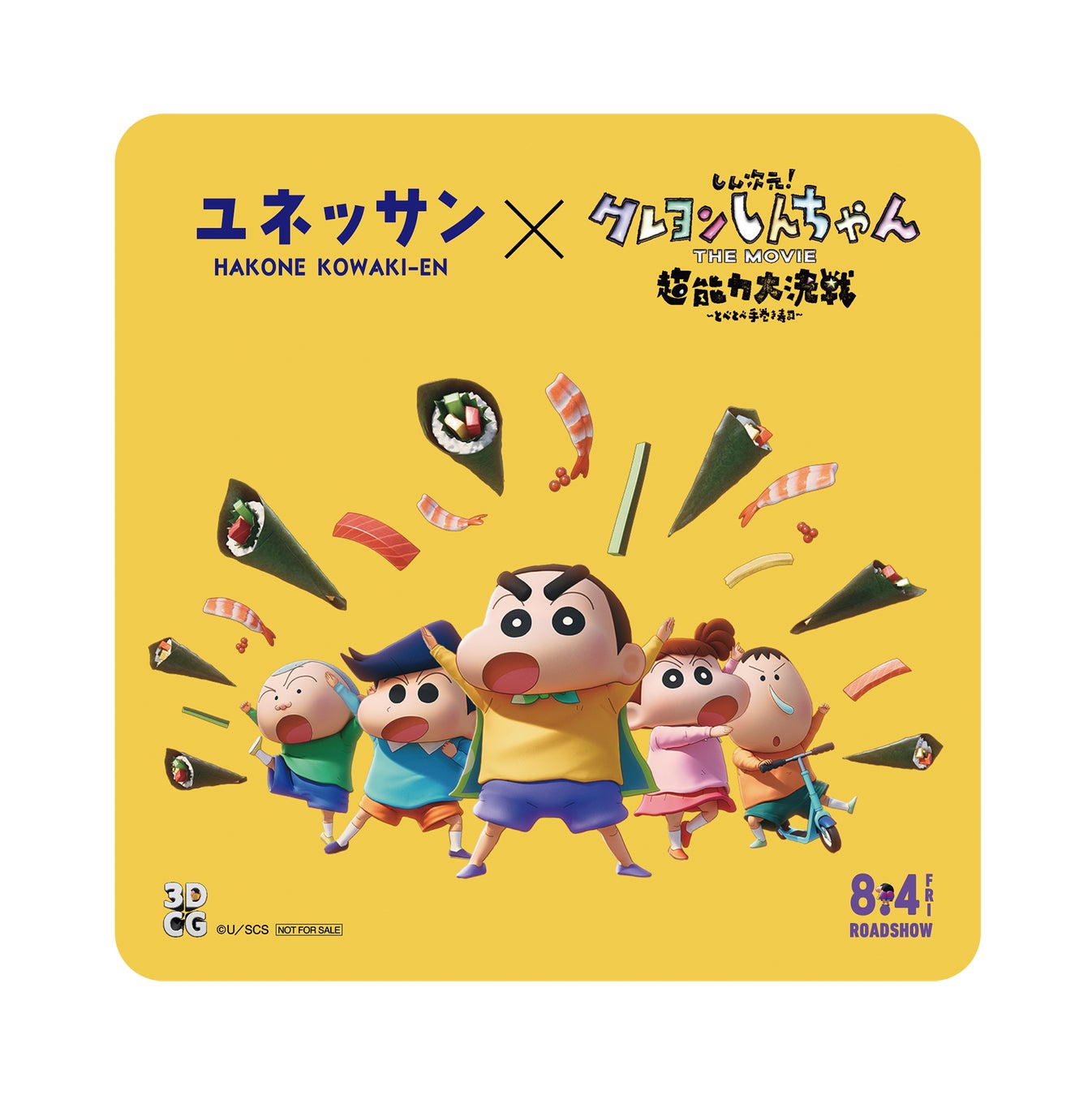 本イベントは、本年7月12日(水)にグランドオープンした箱根ホテル小涌園に合わせて、開業以来 最大のリニューアルを実施する「ユネッサン」と、シリーズ初の3DCGアニメーションでの製作が行われた 『しん次元!クレヨンしんちゃん THE MOVIE 超能力大決戦 ~とべとべ手巻き寿司~』とのコラボとなります。